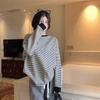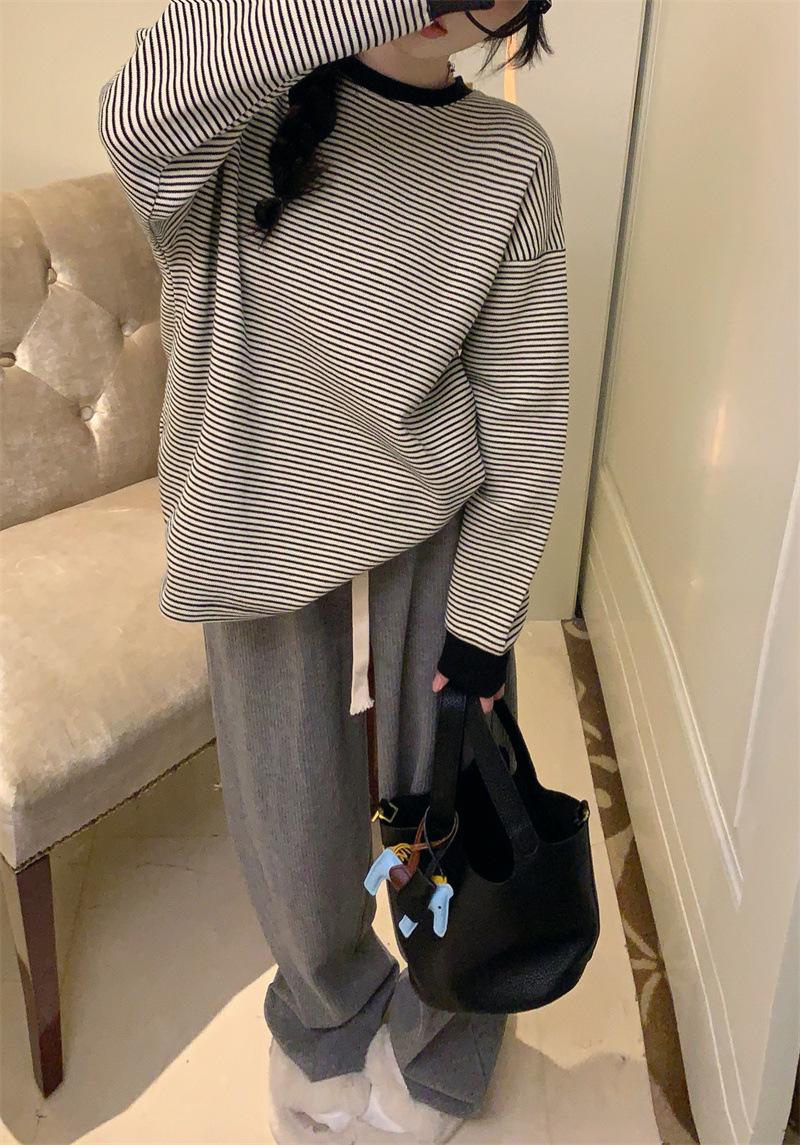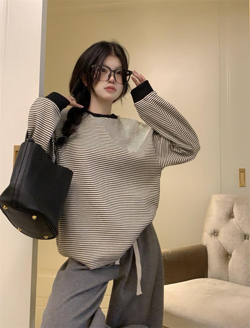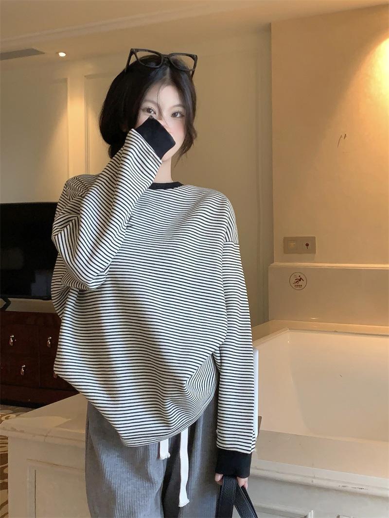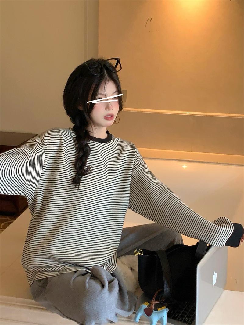 Suéter Camiseta de Manga Larga a Rayas para Mujer Otoño 2024 Nueva Suelta Versátil Cuello Redondo Casual Sudadera de Estudiante Top de Moda