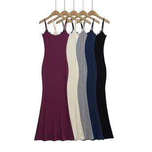 Vestido de tirantes finos para chica sexy y pura, estilo coreano, temperamento que realza la figura, con copas en el pecho, ceñido a las caderas, cola de pez, vestido largo