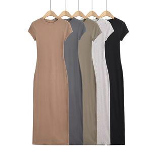 Estilo maduro chica sexy corte ajustado color sólido ceñido a las caderas vestido largo mujer diseño nicho abertura trasera cuello redondo hombro regular manga corta vestido