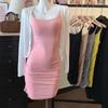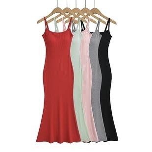 Muestra Figura Chica Caliente Ajustado Vestido Halter para Mujer ins Verano Nuevo Sexy Espalda Descubierta Tirantes Espagueti Bodycon Vestido Largo