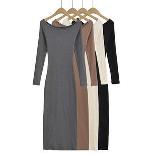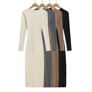 Estilo Otoño/Invierno 2024 Vestido Largo de Temperamento Adelgazante Elástico Puro y Sexy para Mujer Adelgazante de Manga Larga con Forro de Felpa Cepillada