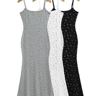 Falda larga francesa sexy ajustada floral cola de pez femenina 2025 estilo deseo puro temperamento figura cadera vestido con tirantes