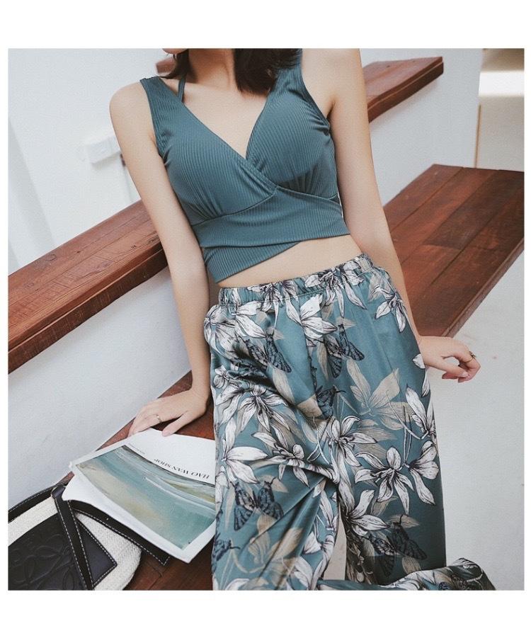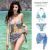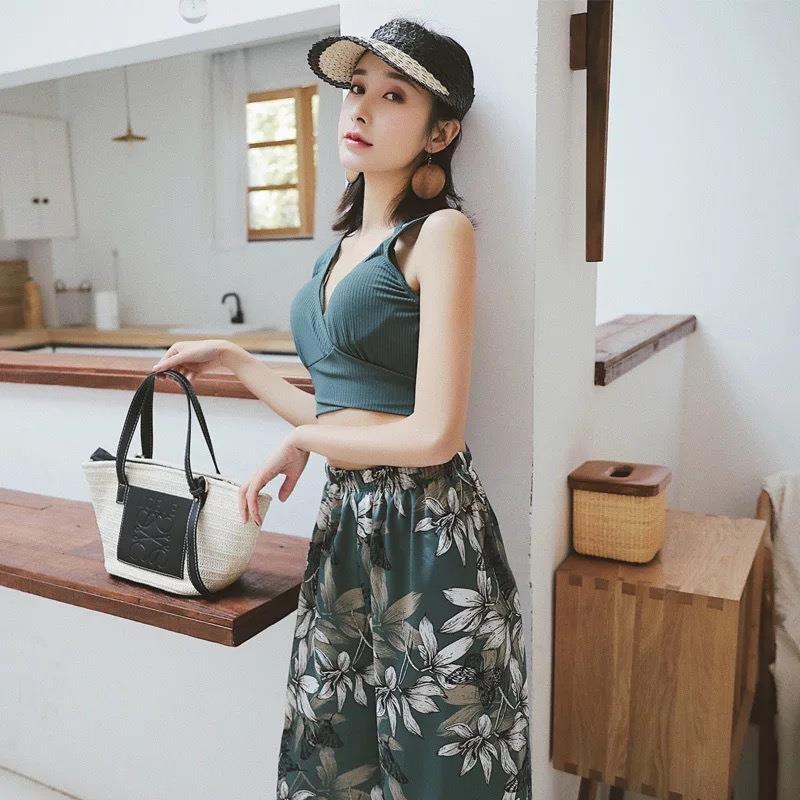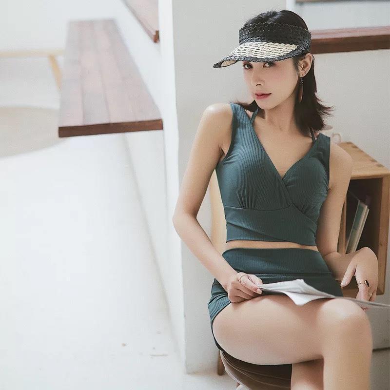Traje de baño bikini de tres piezas pecho pequeño pantalones delgados holgado ocio vacaciones playa aguas termales traje de baño dividido al por mayor