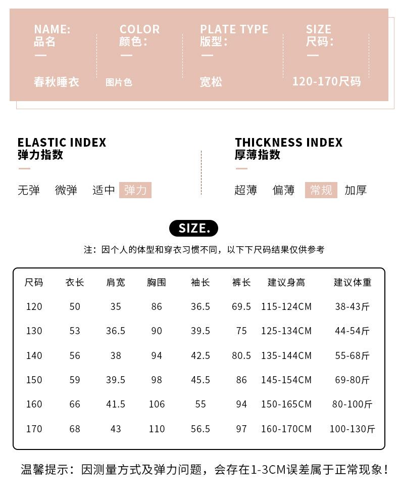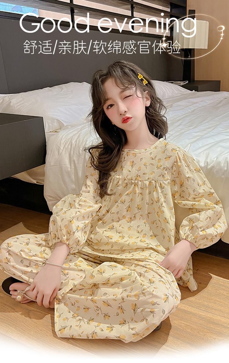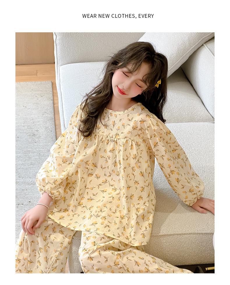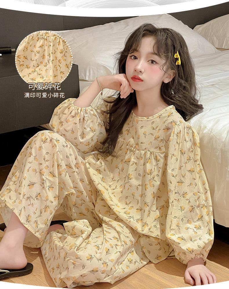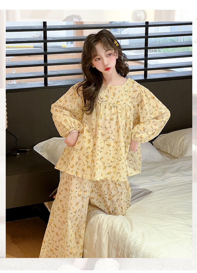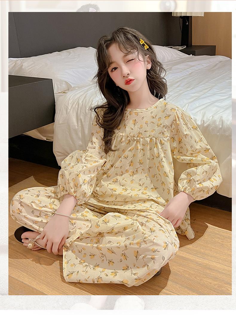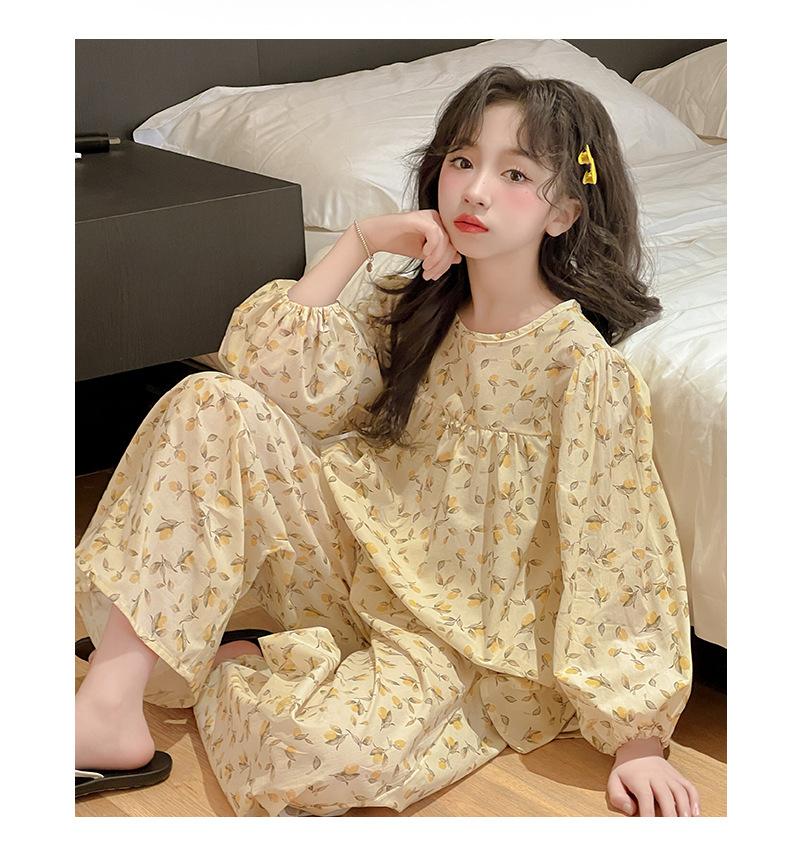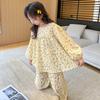 Pijama de Primavera Nueva Llegada para Niñas Estilo Dulce y Perezoso Cuello Redondo Manga Larga Suelto Traje de Ropa para Casa Pijama para Usar Afuera
