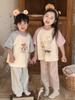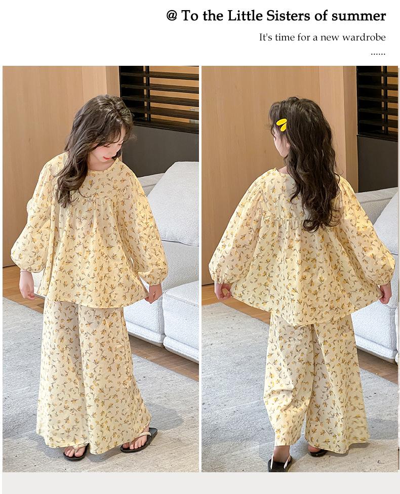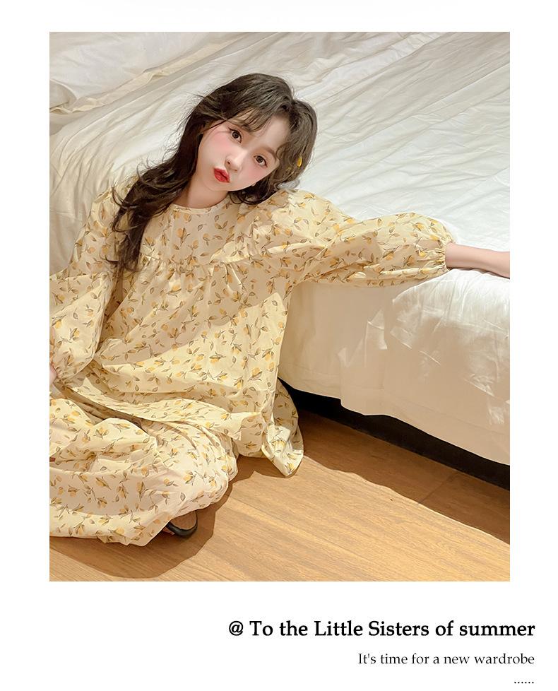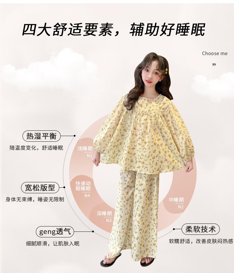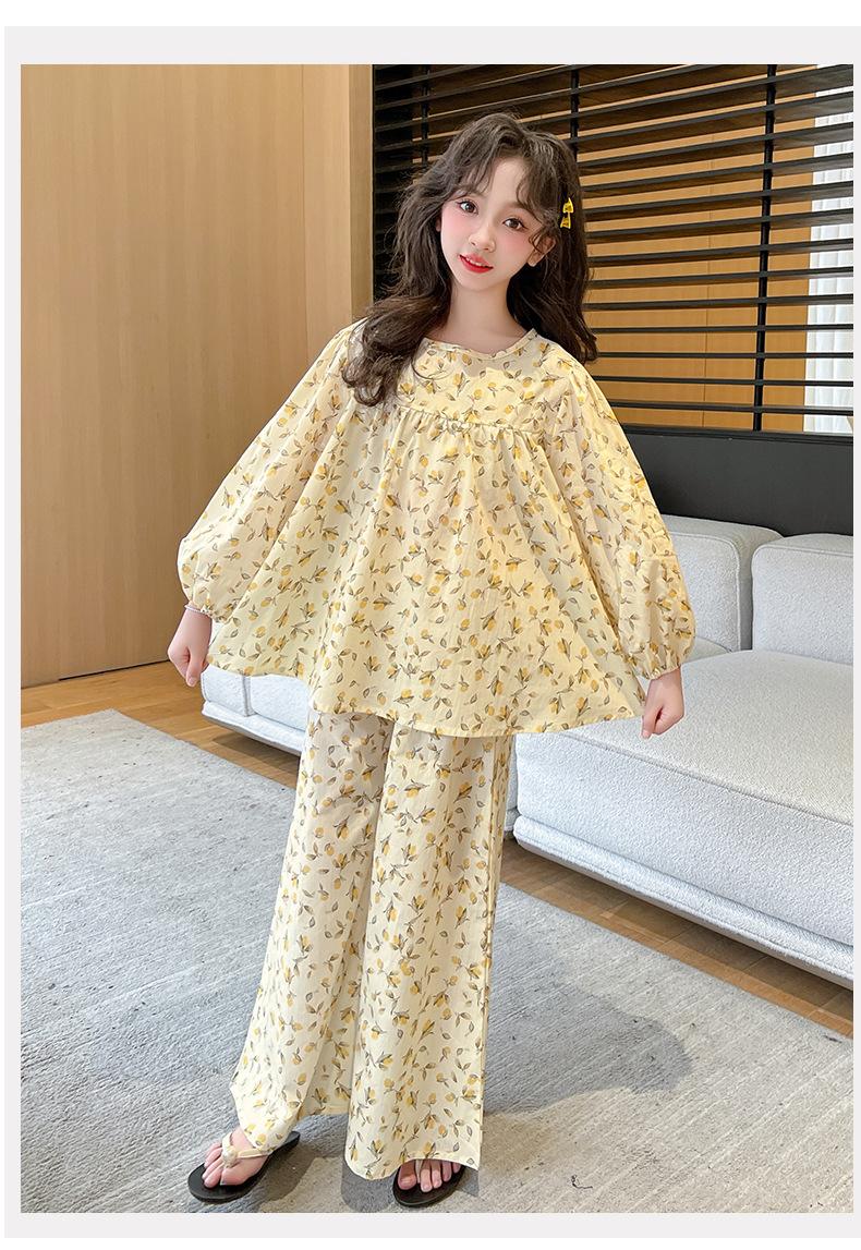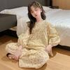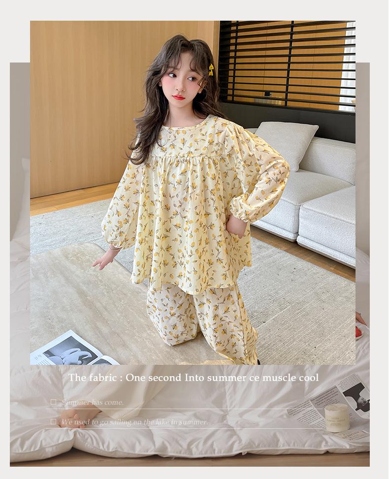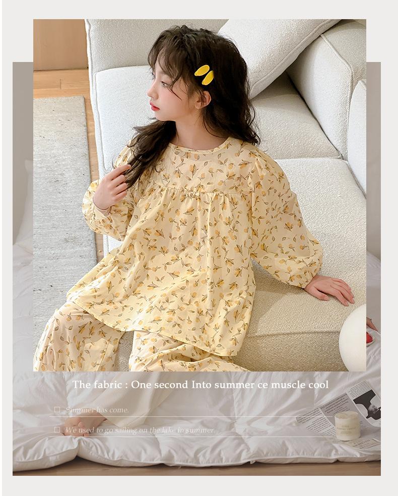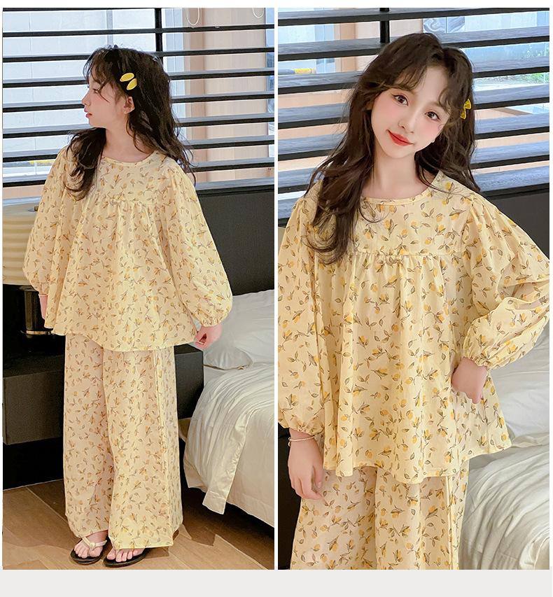 Pijama de Primavera Nueva Llegada para Niñas Estilo Dulce y Perezoso Cuello Redondo Manga Larga Suelto Traje de Ropa para Casa Pijama para Usar Afuera
