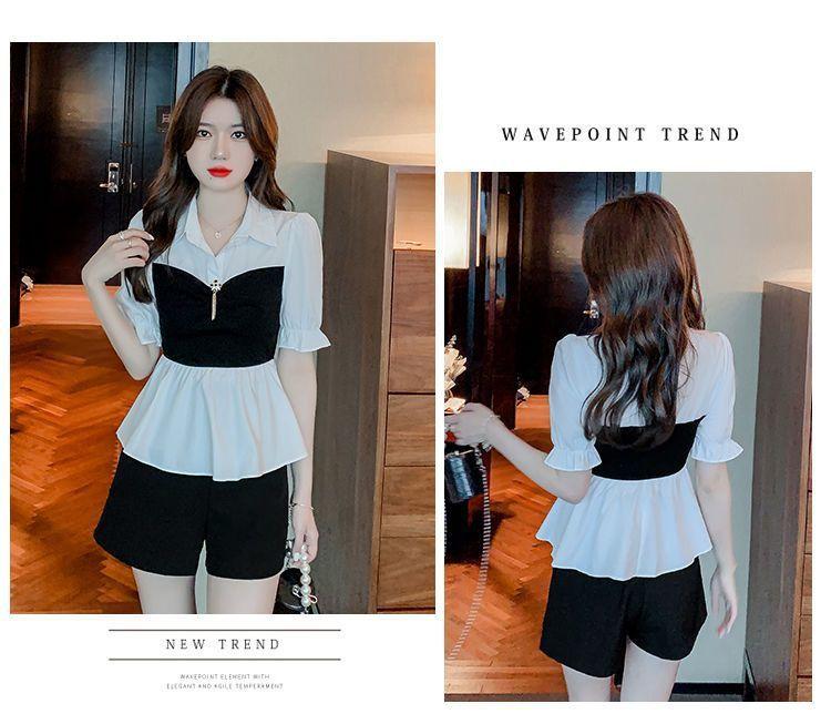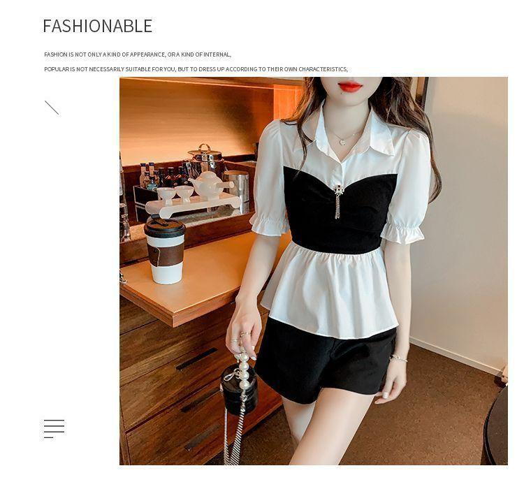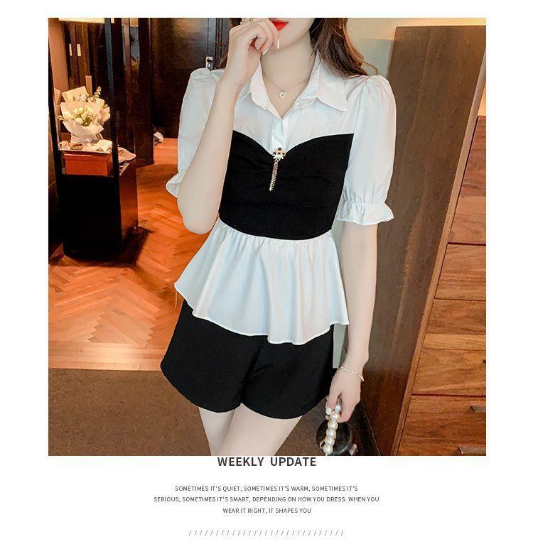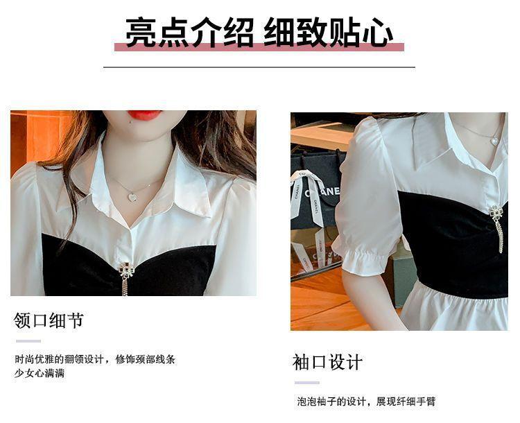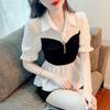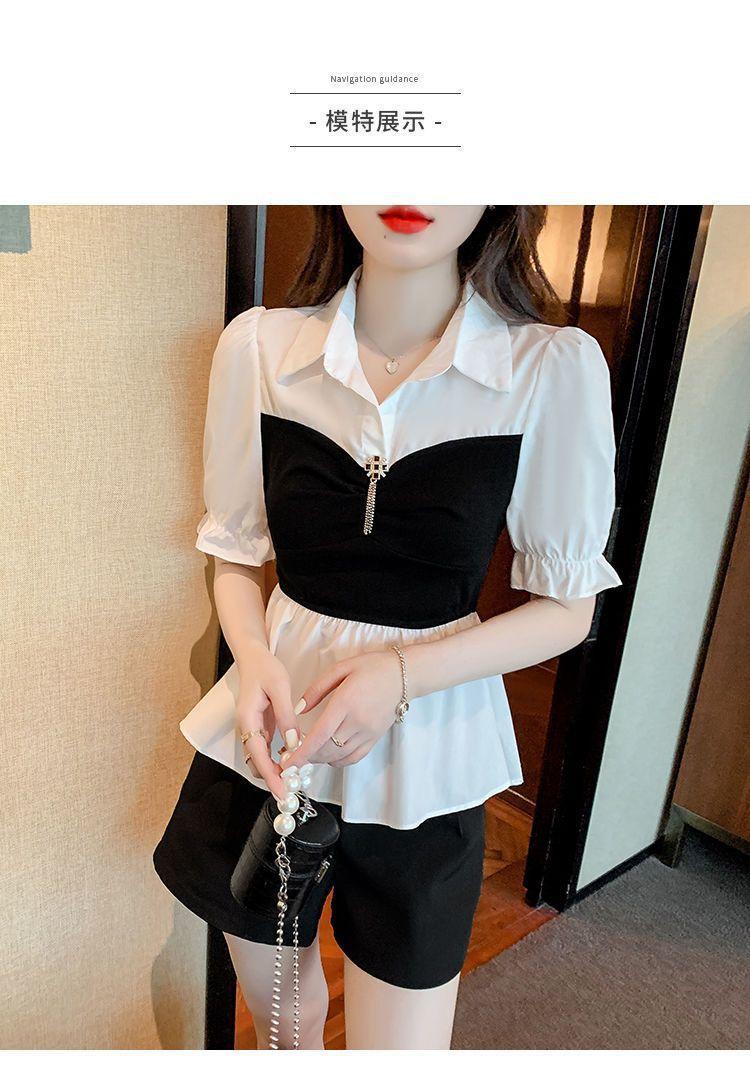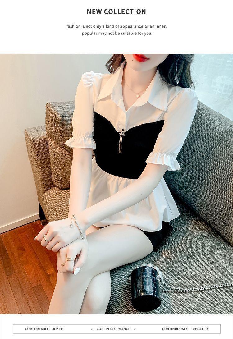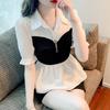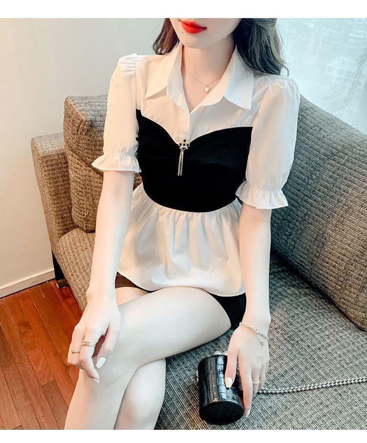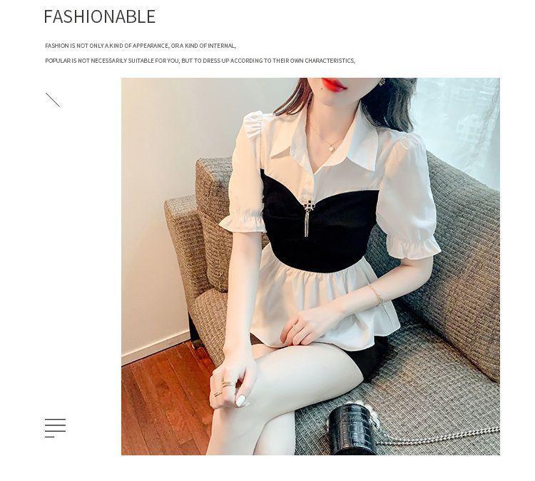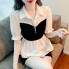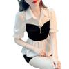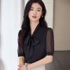 Camisa elegante de gasa de manga corta con cuello polo para mujer Verano 2024 Nueva camisa adelgazante versátil de corte entallado de moda