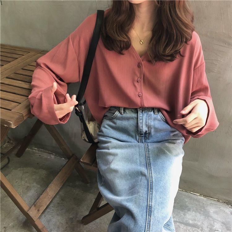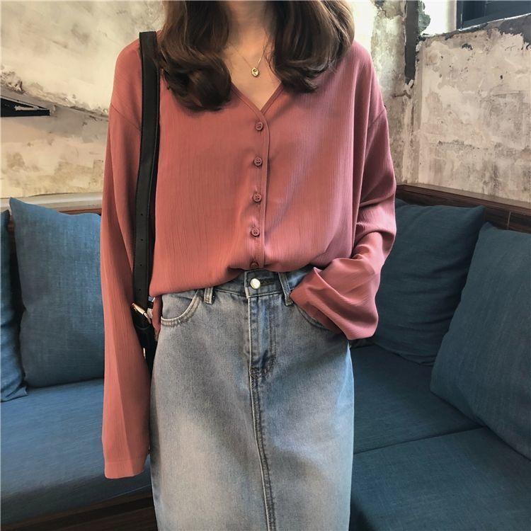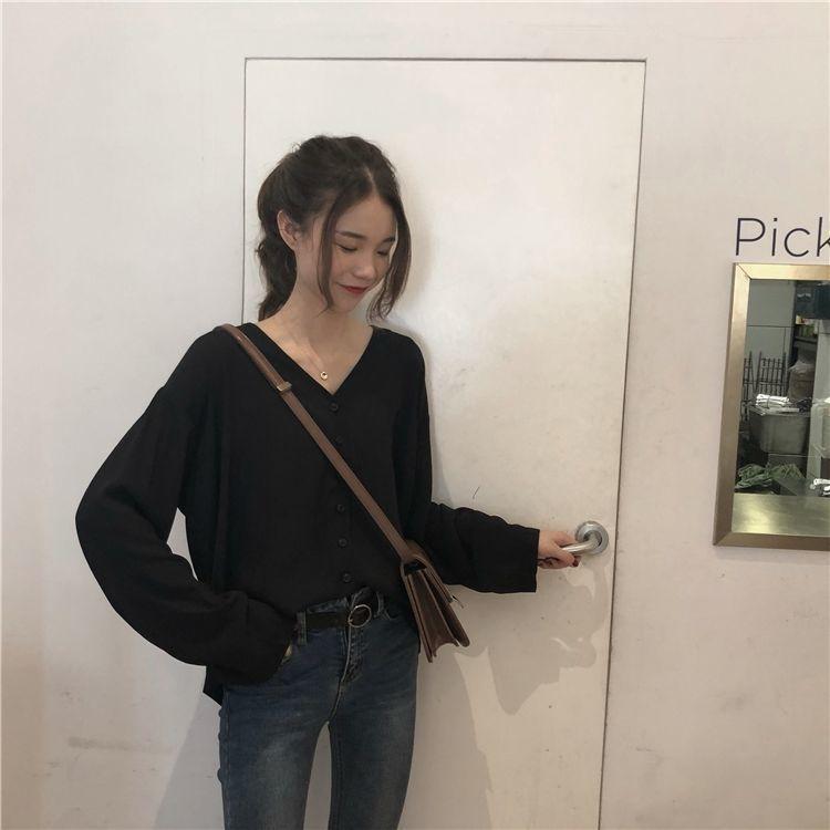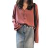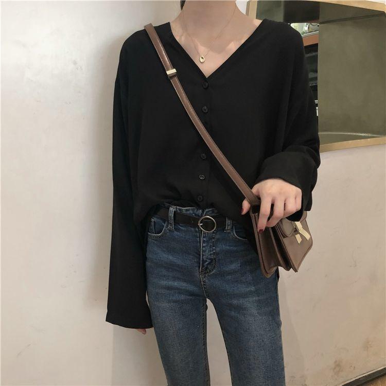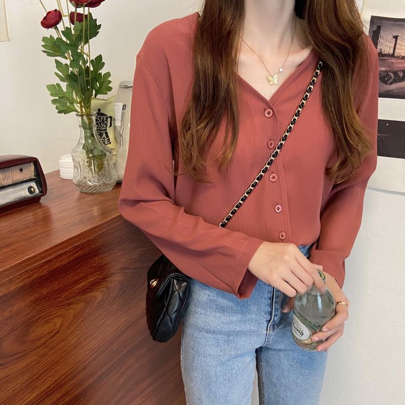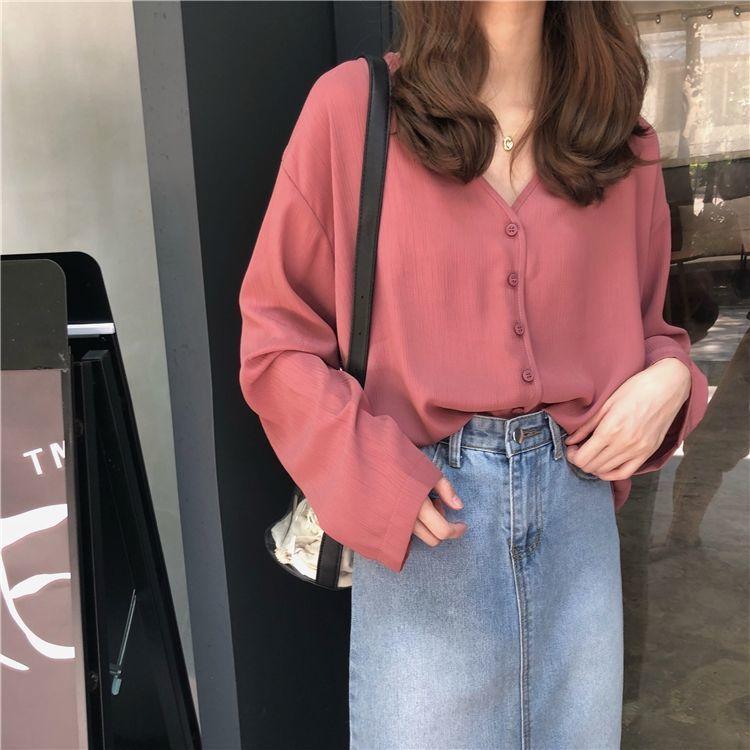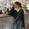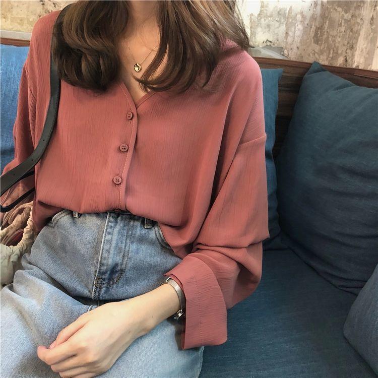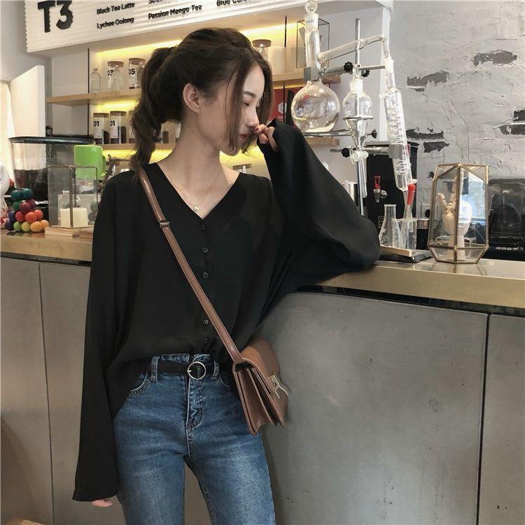 Camisa de nicho con diseño de talla grande para chica gordita para mujer, blusa holgada de primavera y otoño con cuello en V y manga larga adelgazante de estilo occidental.