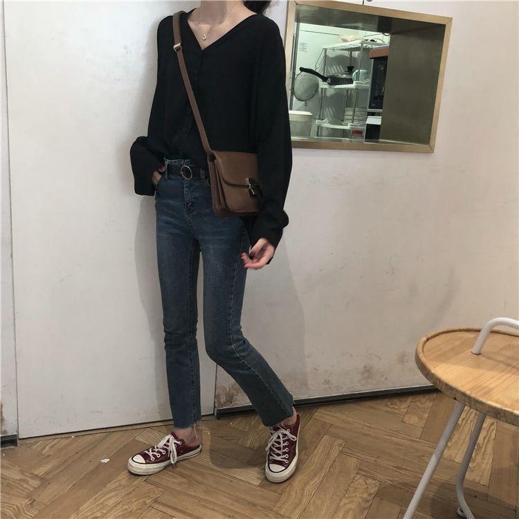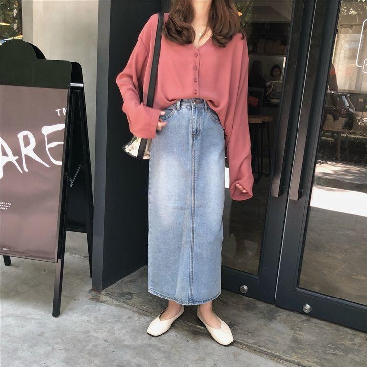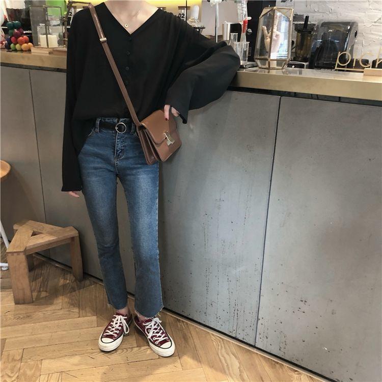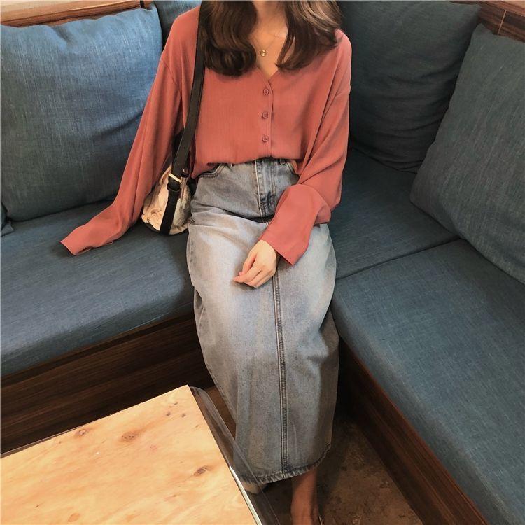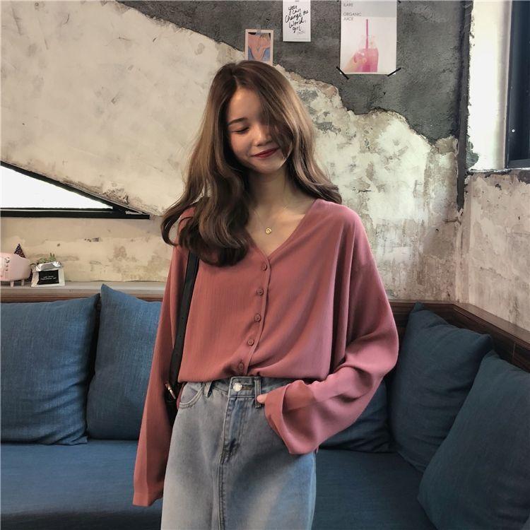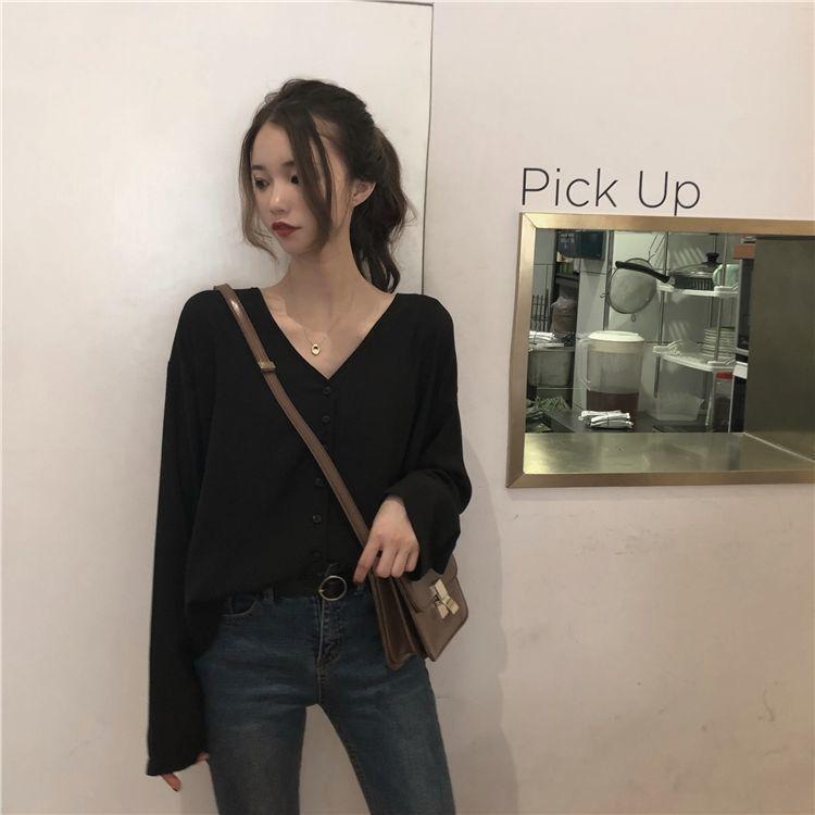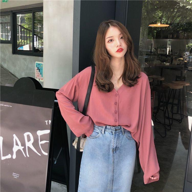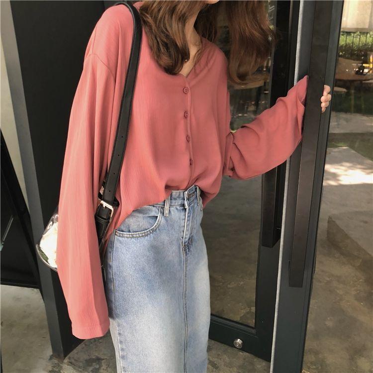 Camisa de nicho con diseño de talla grande para chica gordita para mujer, blusa holgada de primavera y otoño con cuello en V y manga larga adelgazante de estilo occidental.