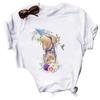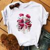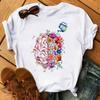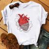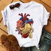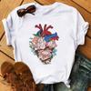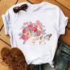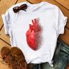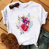 Camiseta de manga corta con estampado de flores y corazones para mujer, novedad de verano de comercio exterior 2025