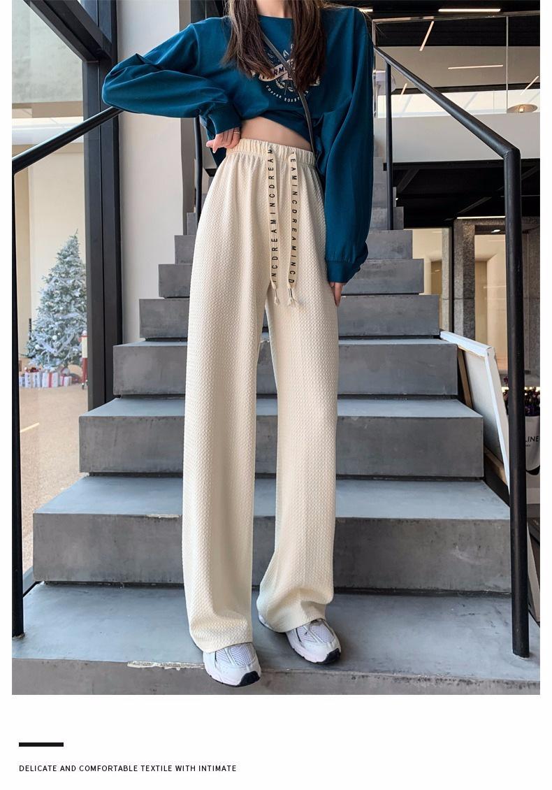 594 # 2025 Pantalones Casuales de Cintura Alta para Otoño e Invierno Pantalones Sueltos de Pierna Recta y Pierna Ancha Pantalones Deportivos Casuales Pequeños con Cordón para Mujer