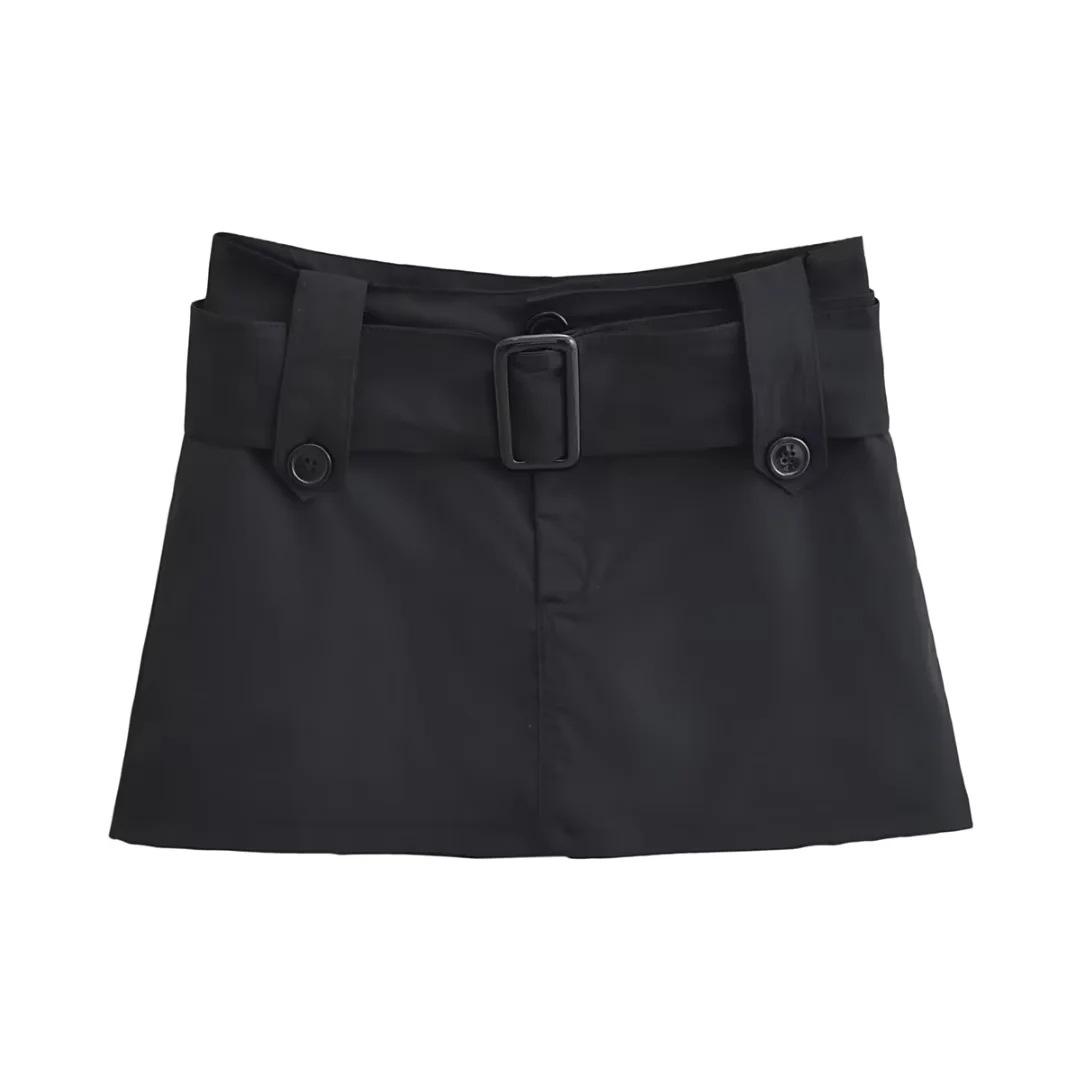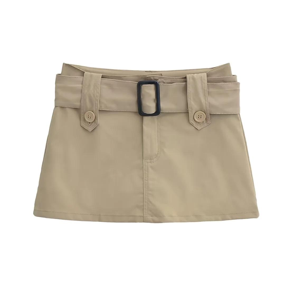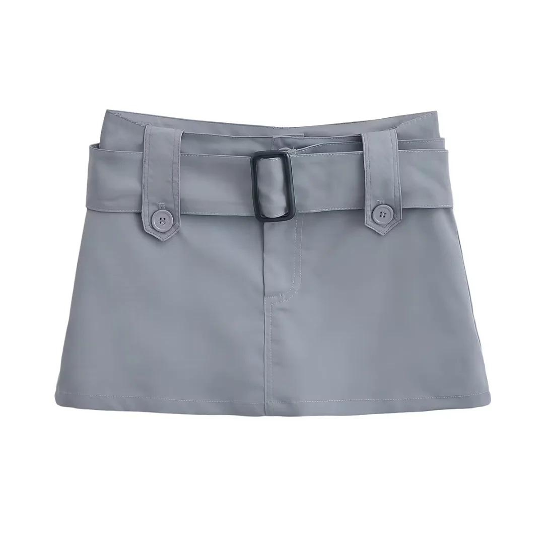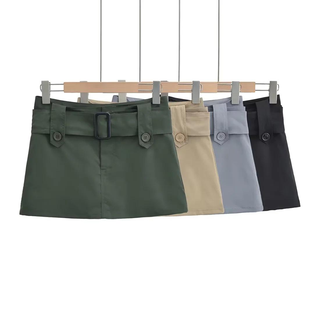 Falda corta ajustada antiexposición nueva con cinturón retro para mujer estilo americano y europeo