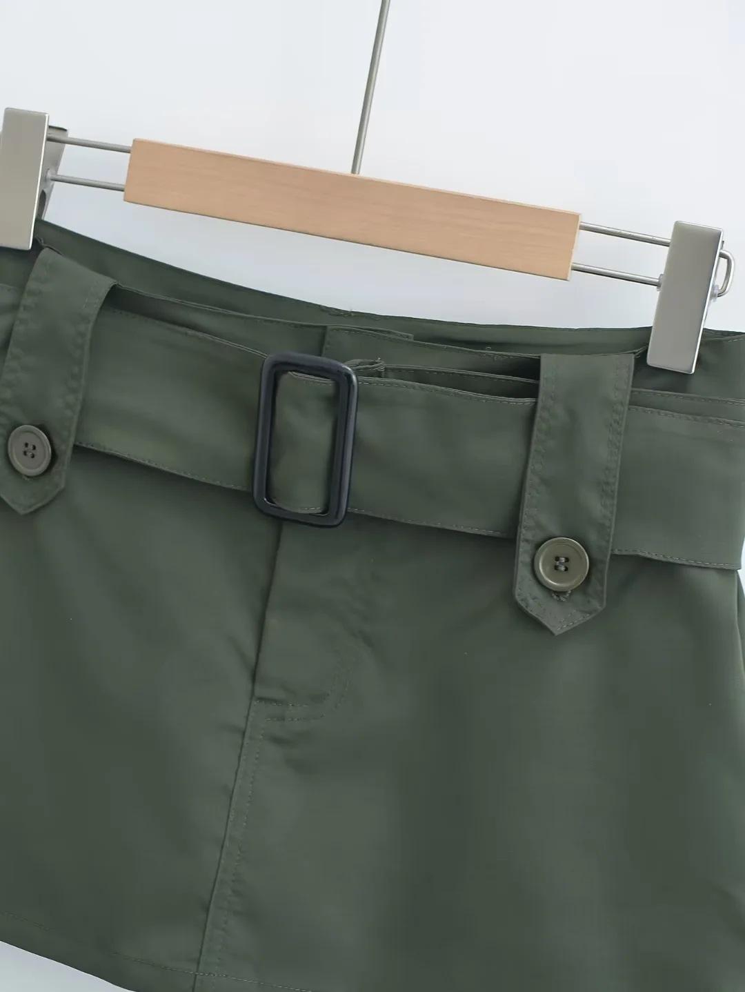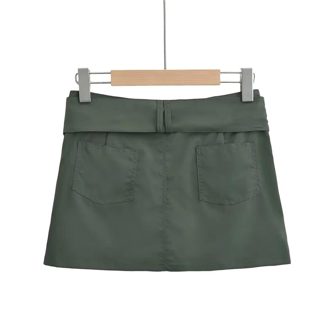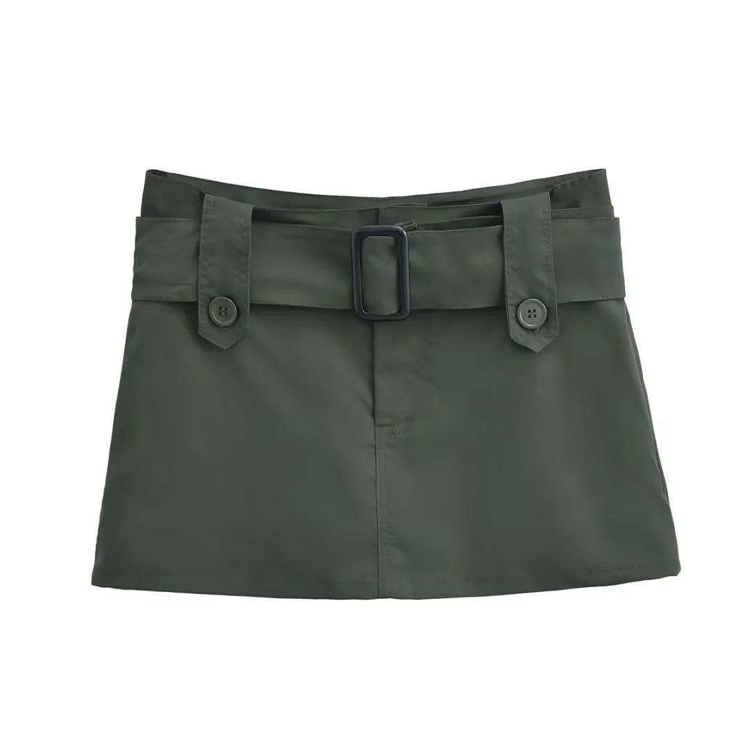 Falda corta ajustada antiexposición nueva con cinturón retro para mujer estilo americano y europeo