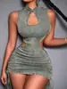 Falda de verano 2024 para mujer, estilo europeo y americano, con cuello y tirantes, estilo discoteca, sin espalda y cadera