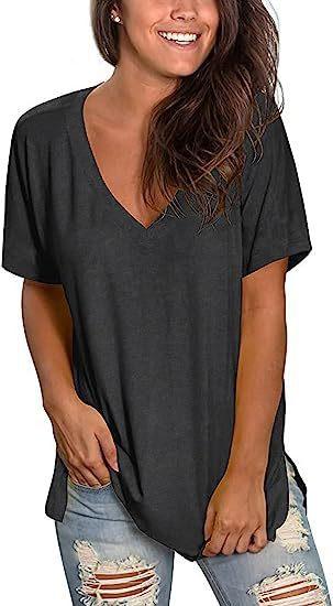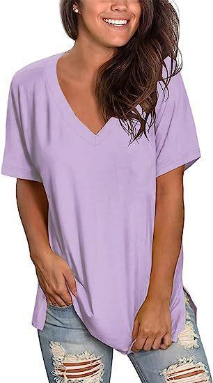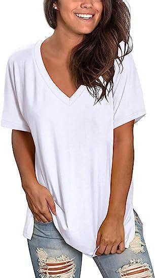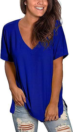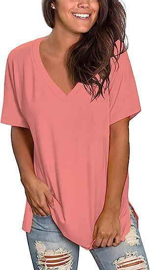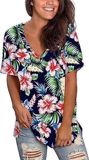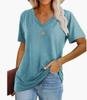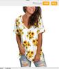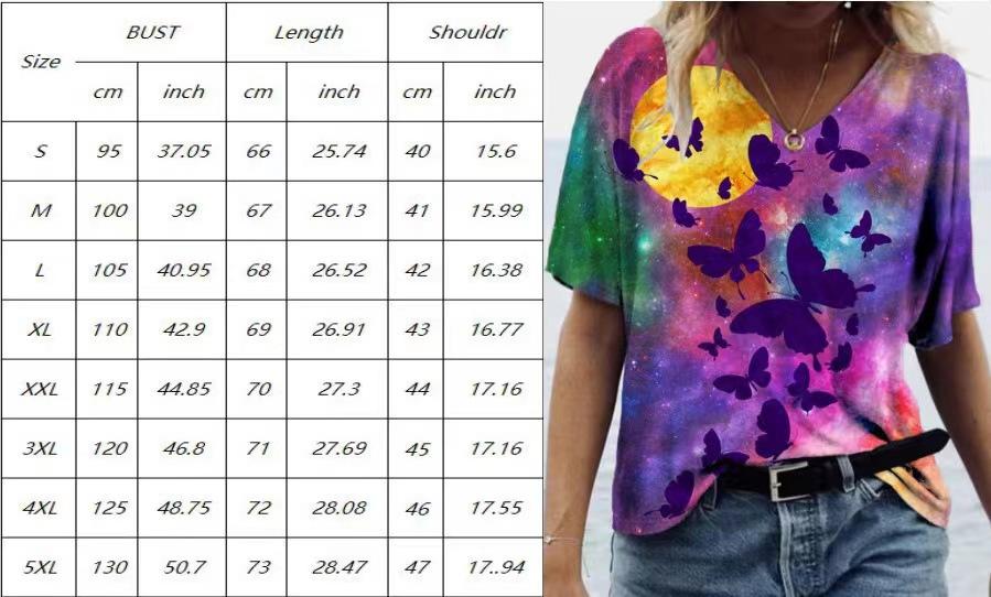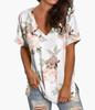 Camiseta con cuello en V estampada para mujer, nueva camiseta de manga corta con estampado de comercio exterior de Amazon para Europa y América.
