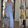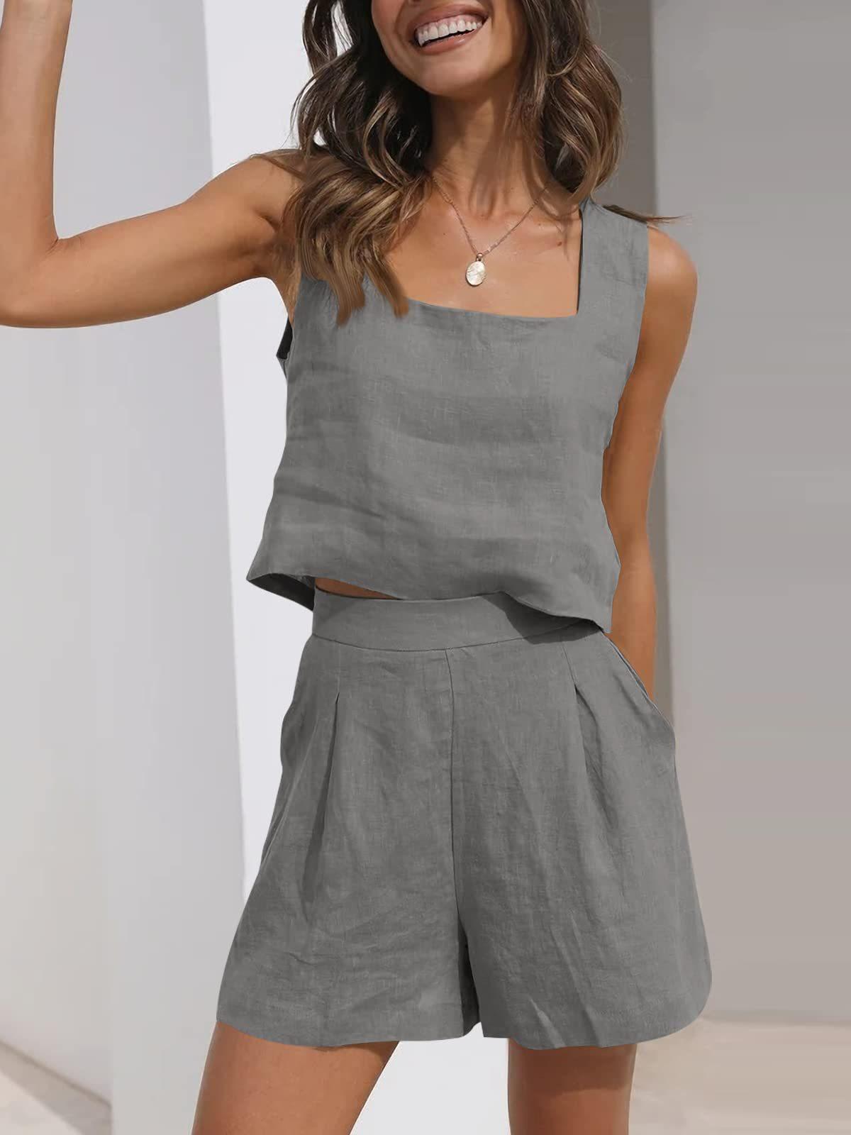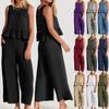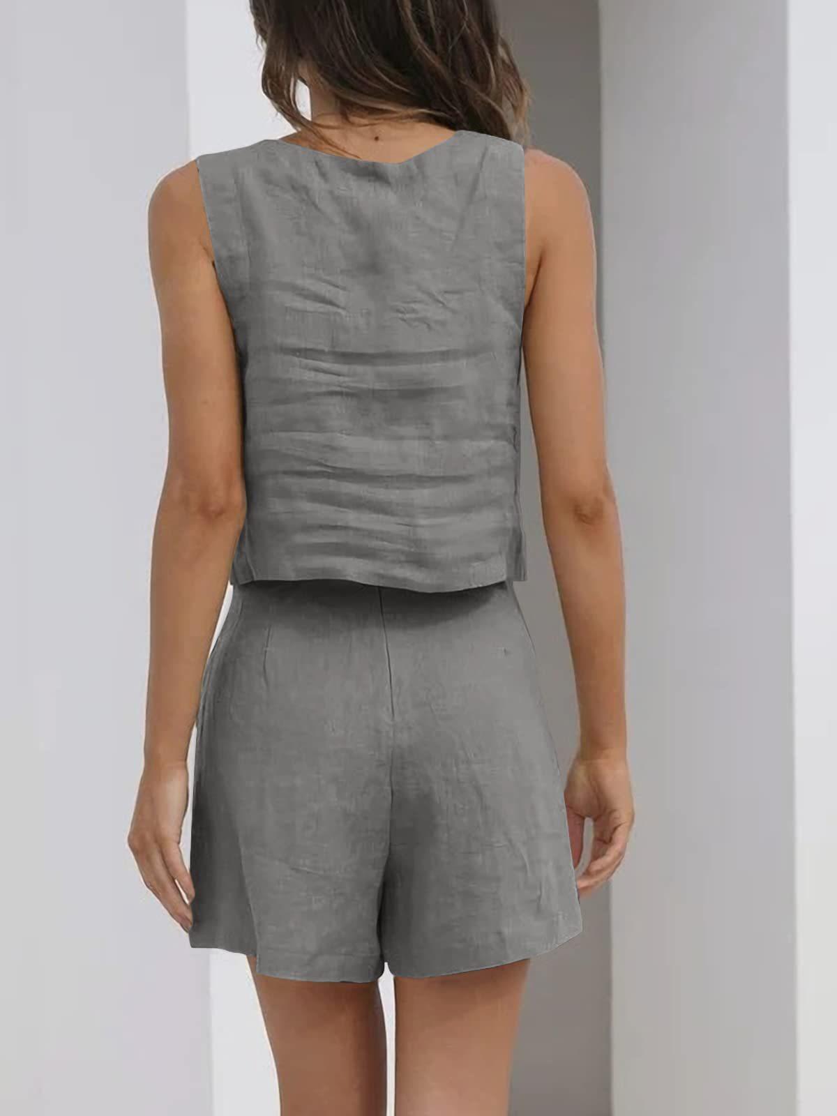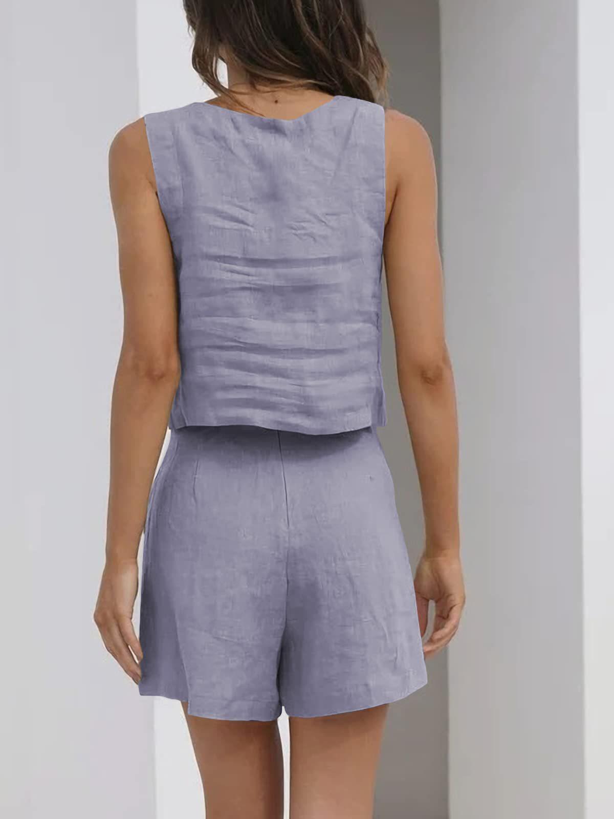 Amazon transfronterizo Nuevo Comercio Exterior Europeo y Americano Traje casual de 2 piezas para mujer Shorts de lino Top sin mangas Chaleco
