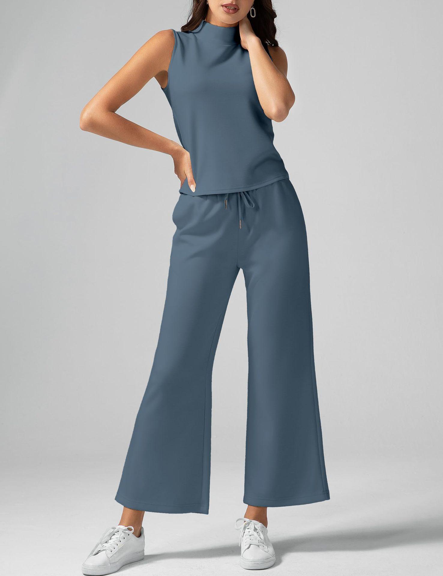 Conjunto deportivo informal de dos piezas con pantalones cortos y pierna ancha para mujer de Amazon, de Europa y América, para verano, moda europea y americana.
