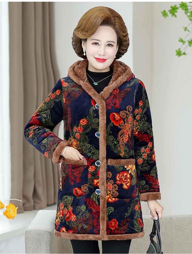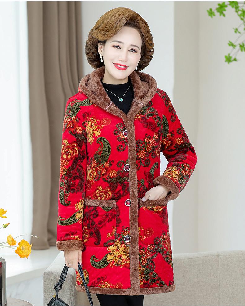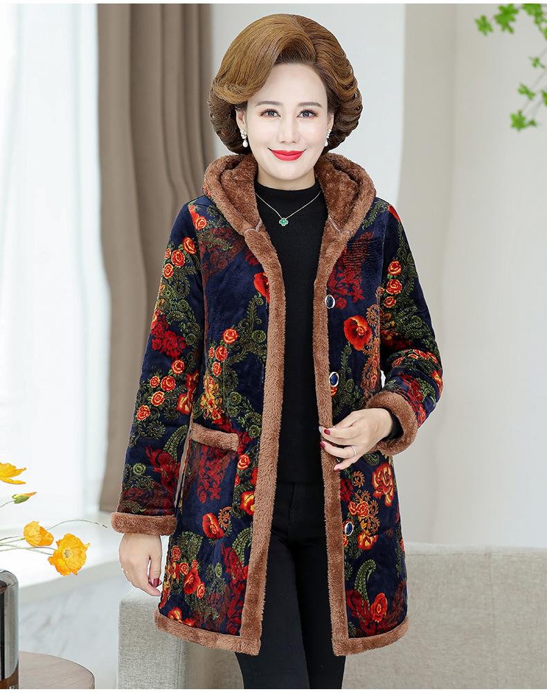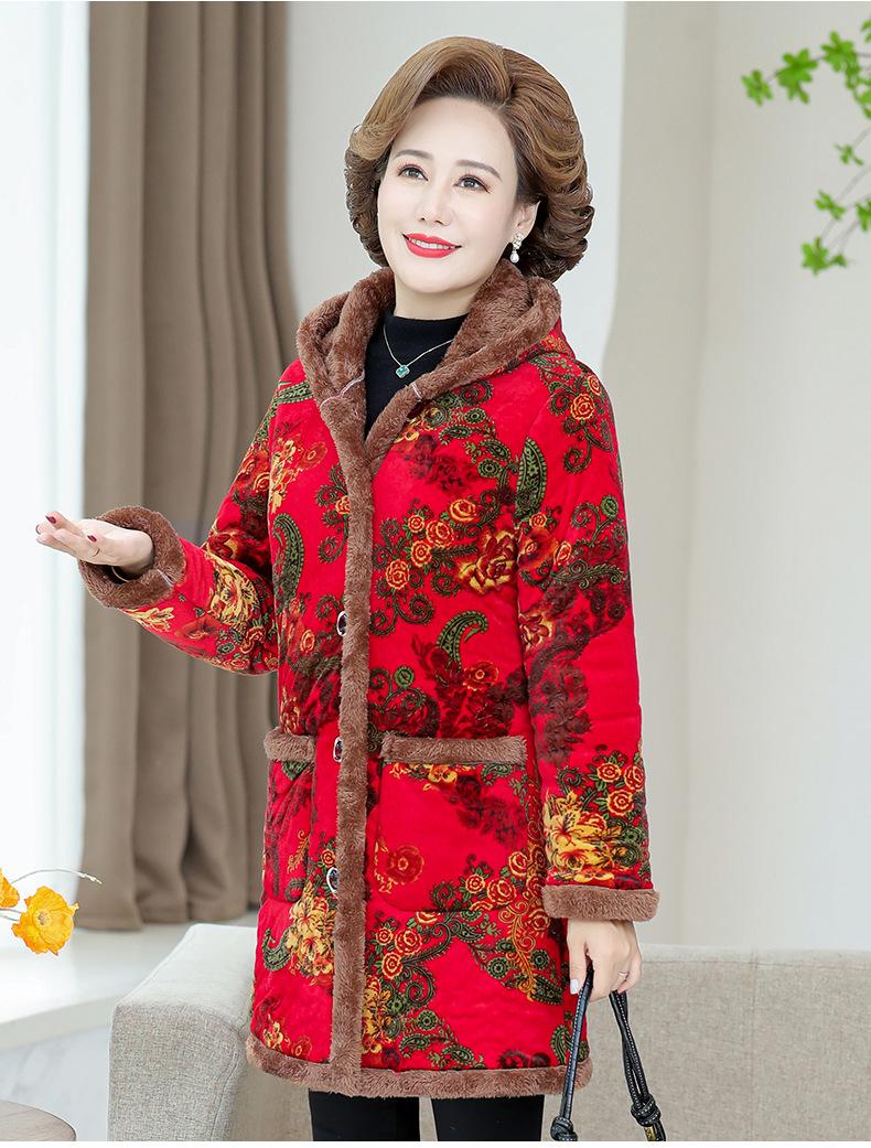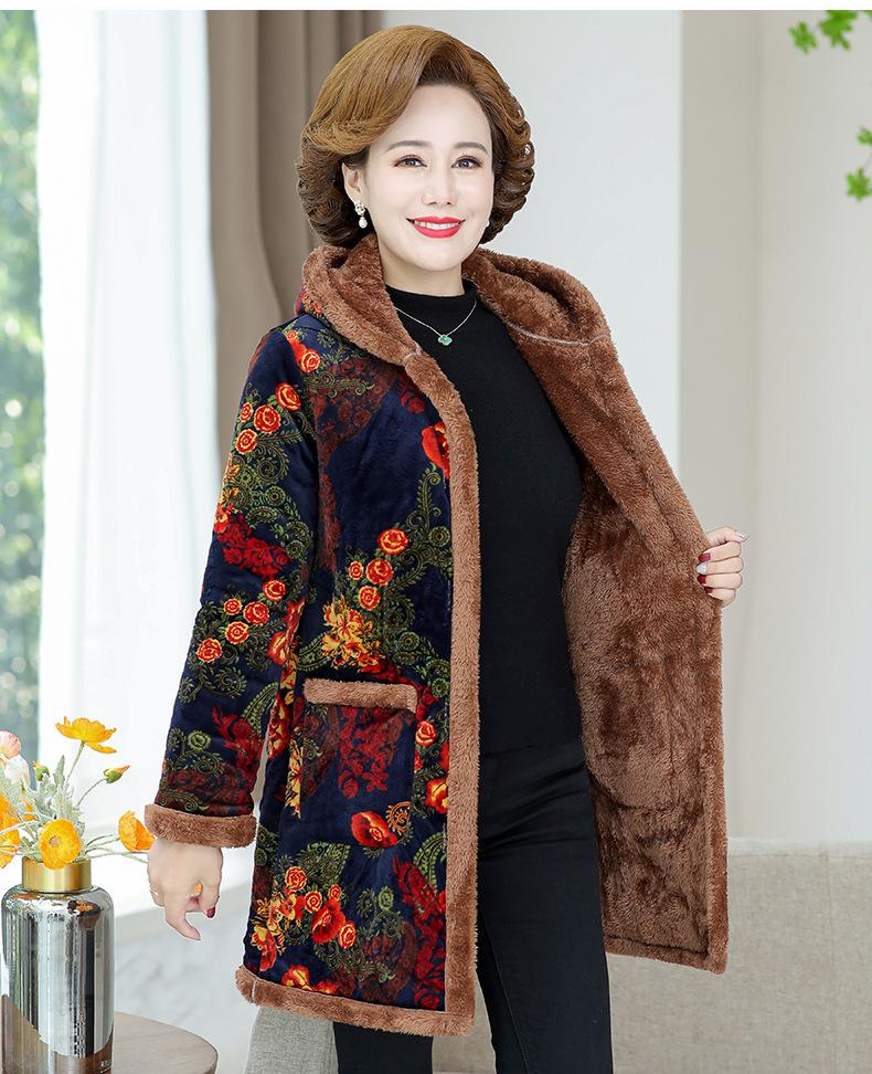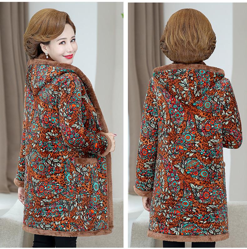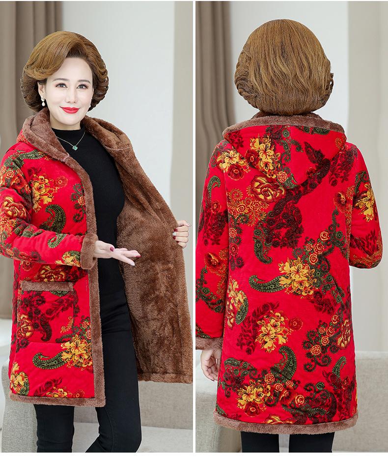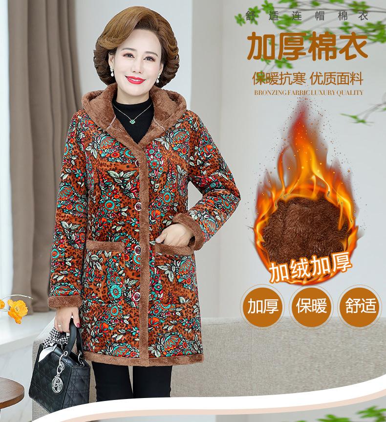 Chaqueta acolchada de algodón de invierno para madre, abrigo largo 2024, nueva chaqueta acolchada de algodón engrosada con forro polar, chaqueta acolchada de algodón de otoño e invierno para mujeres de mediana edad y mayores