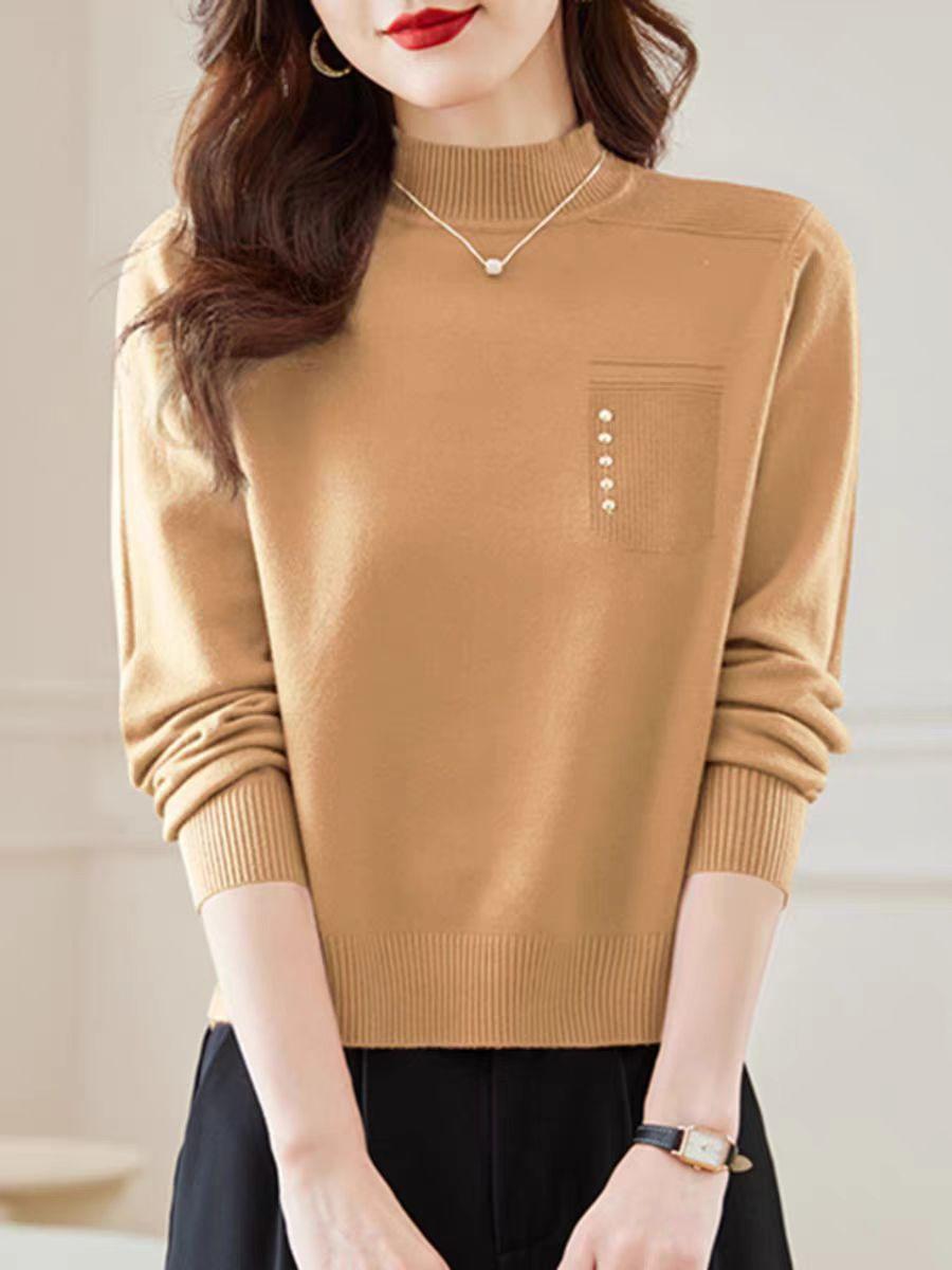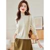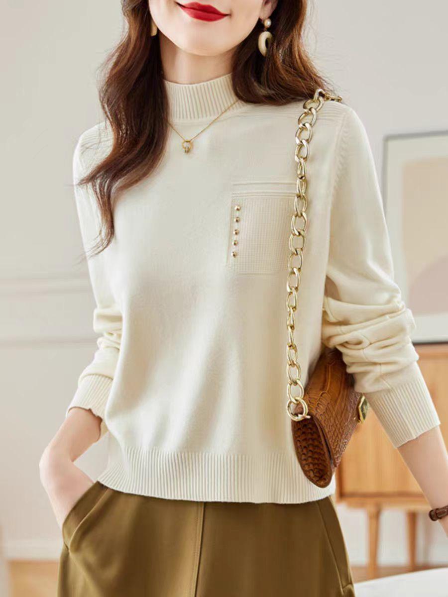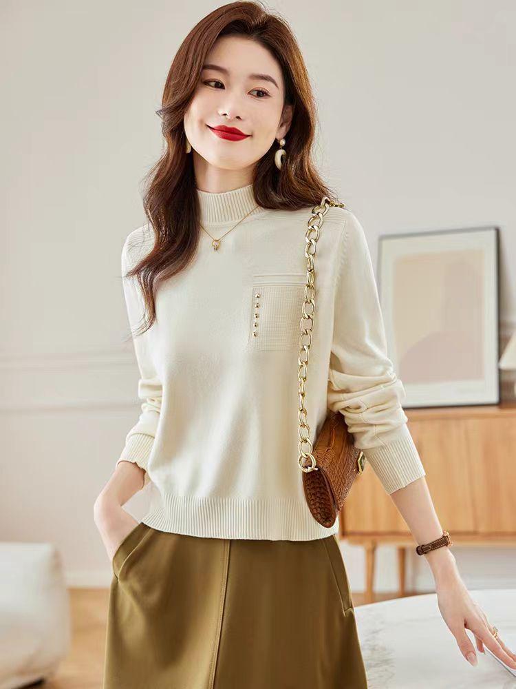 Suéter Blanco de Cuello Medio Alto para Mujer Corto Otoño e Invierno 2024 Nuevo Estilo Camiseta Interior Tejida de Fondo Cintura Alta Top Petite