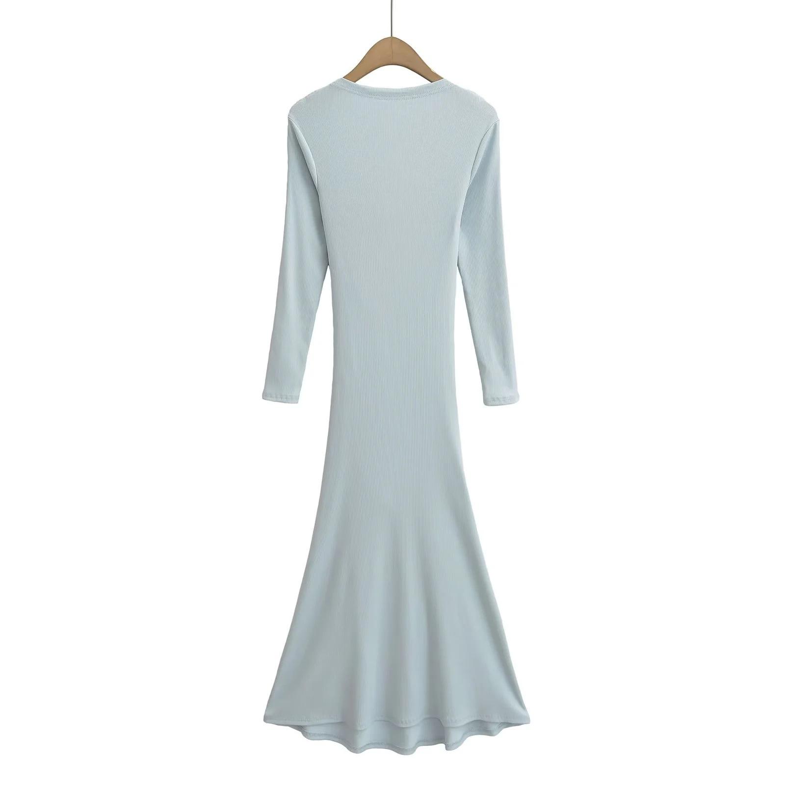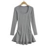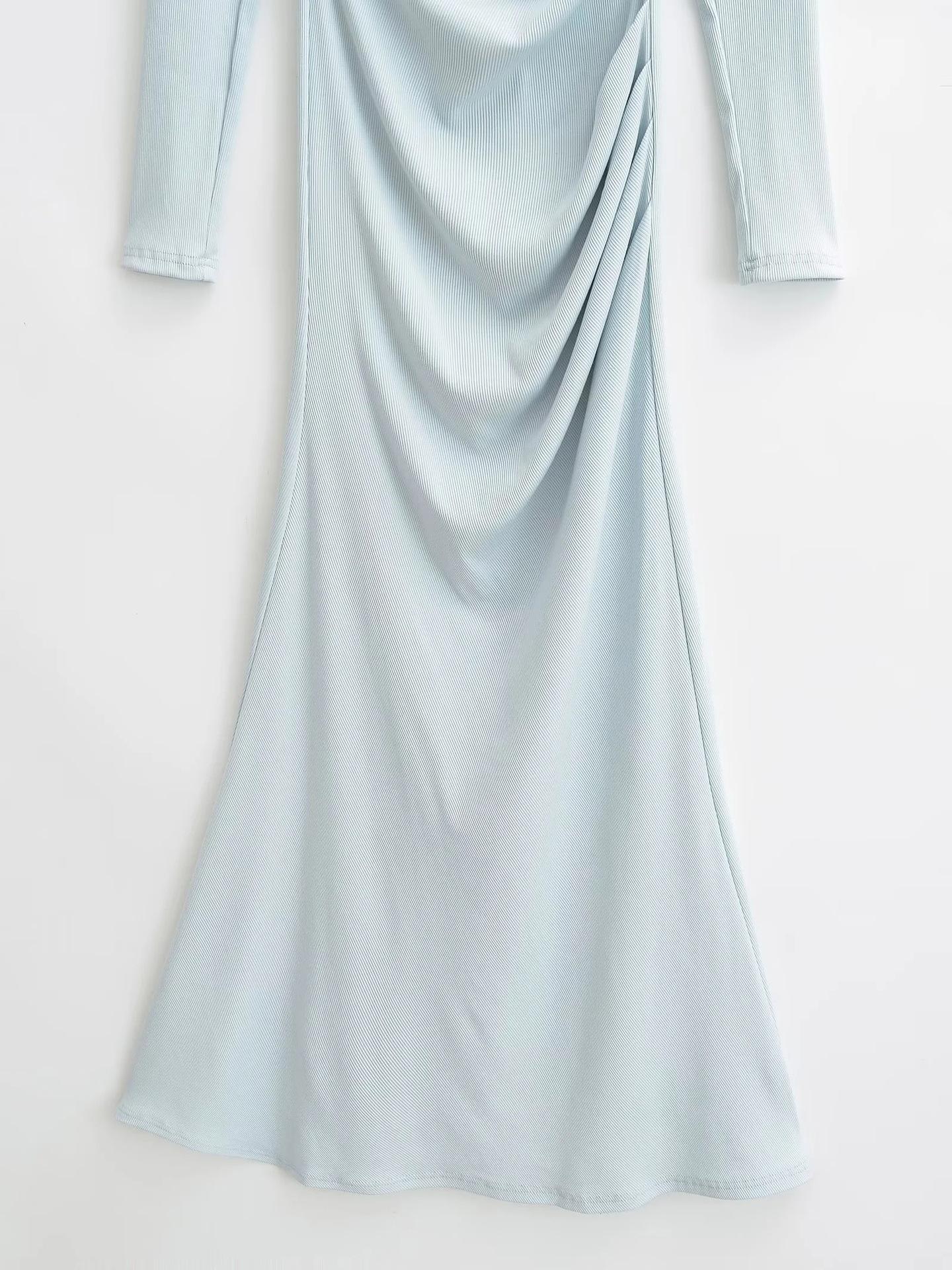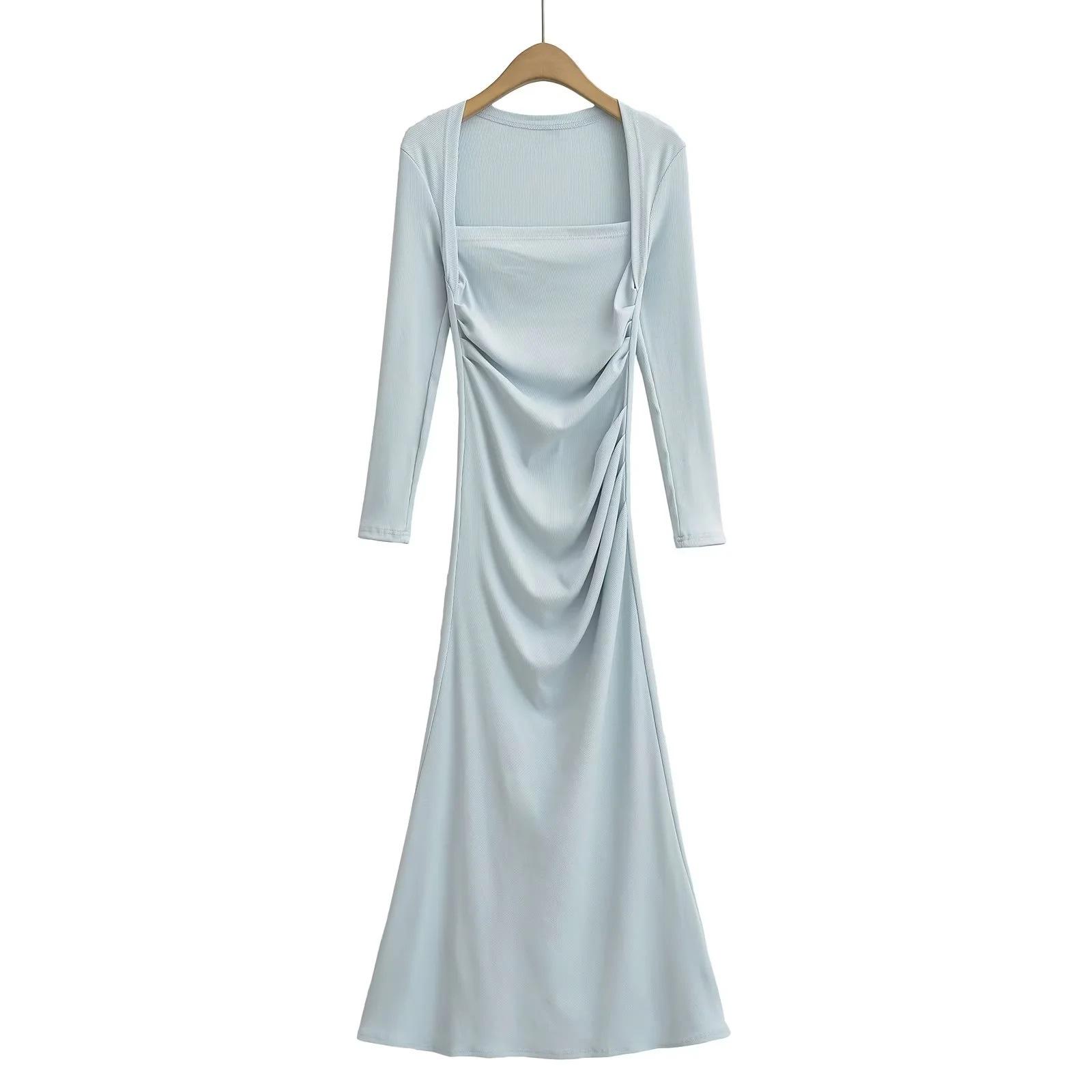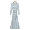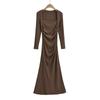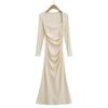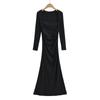 Vestido plisado de manga larga con cuello grande y hombros descubiertos para mujer, vestido de cola de pez ajustado con temperamento atractivo, venta al por mayor