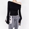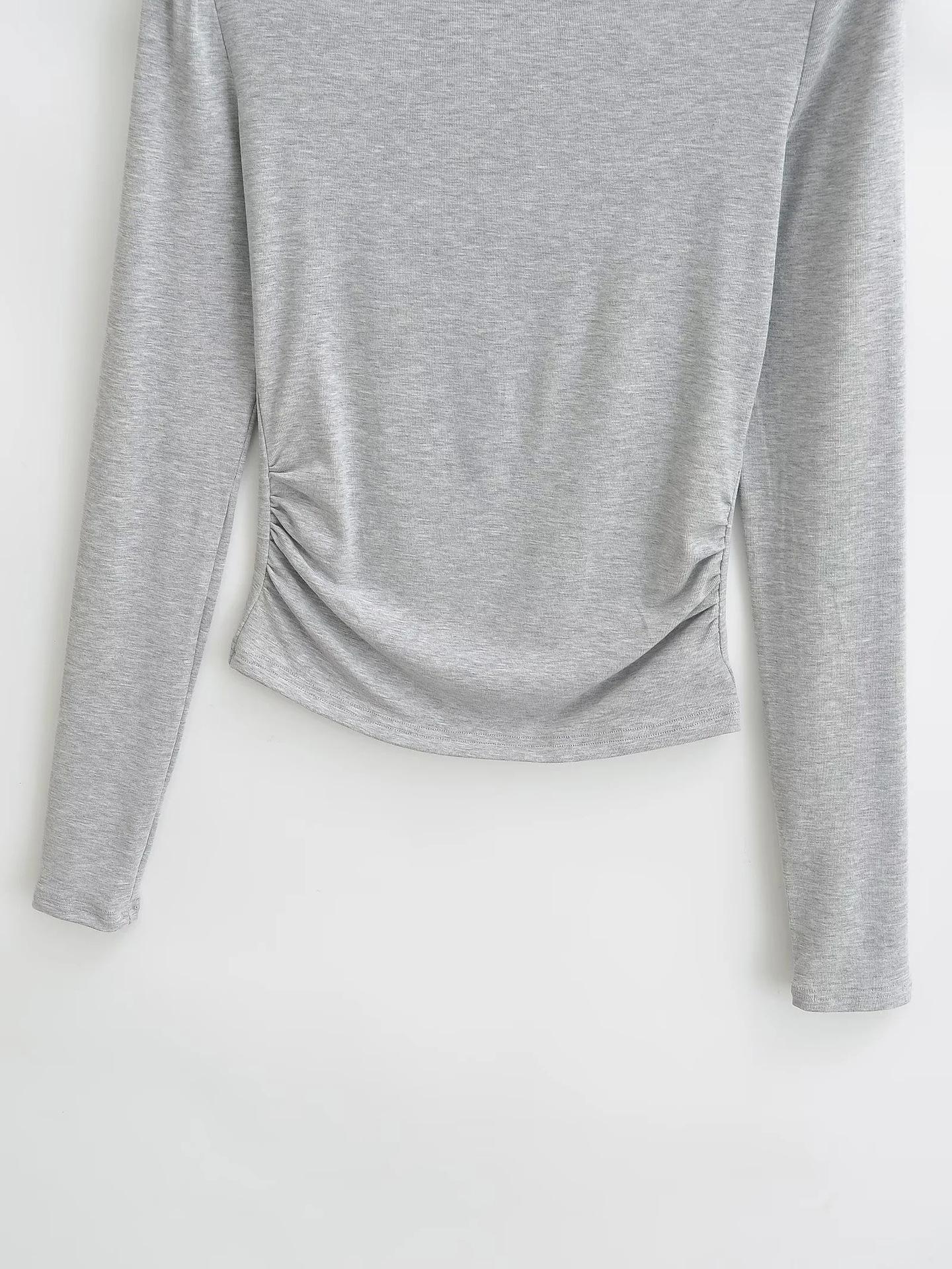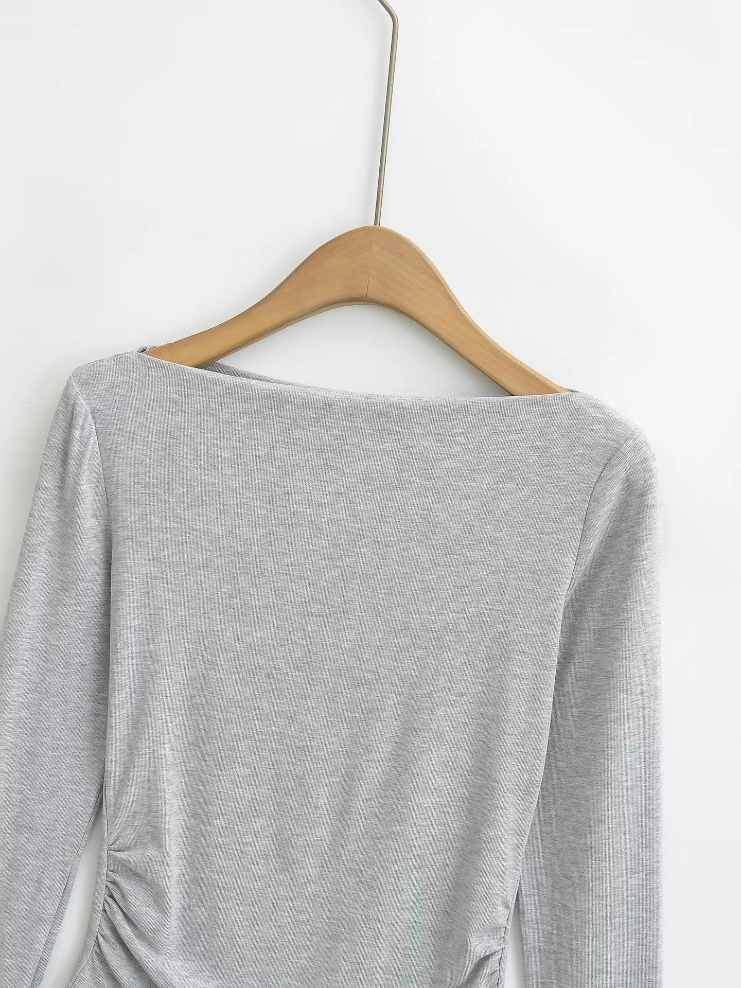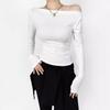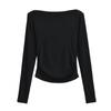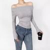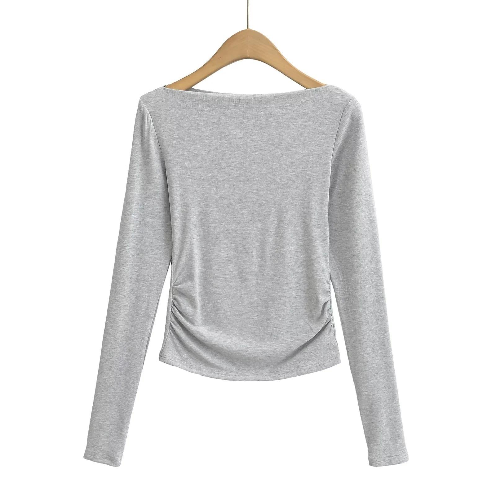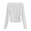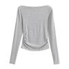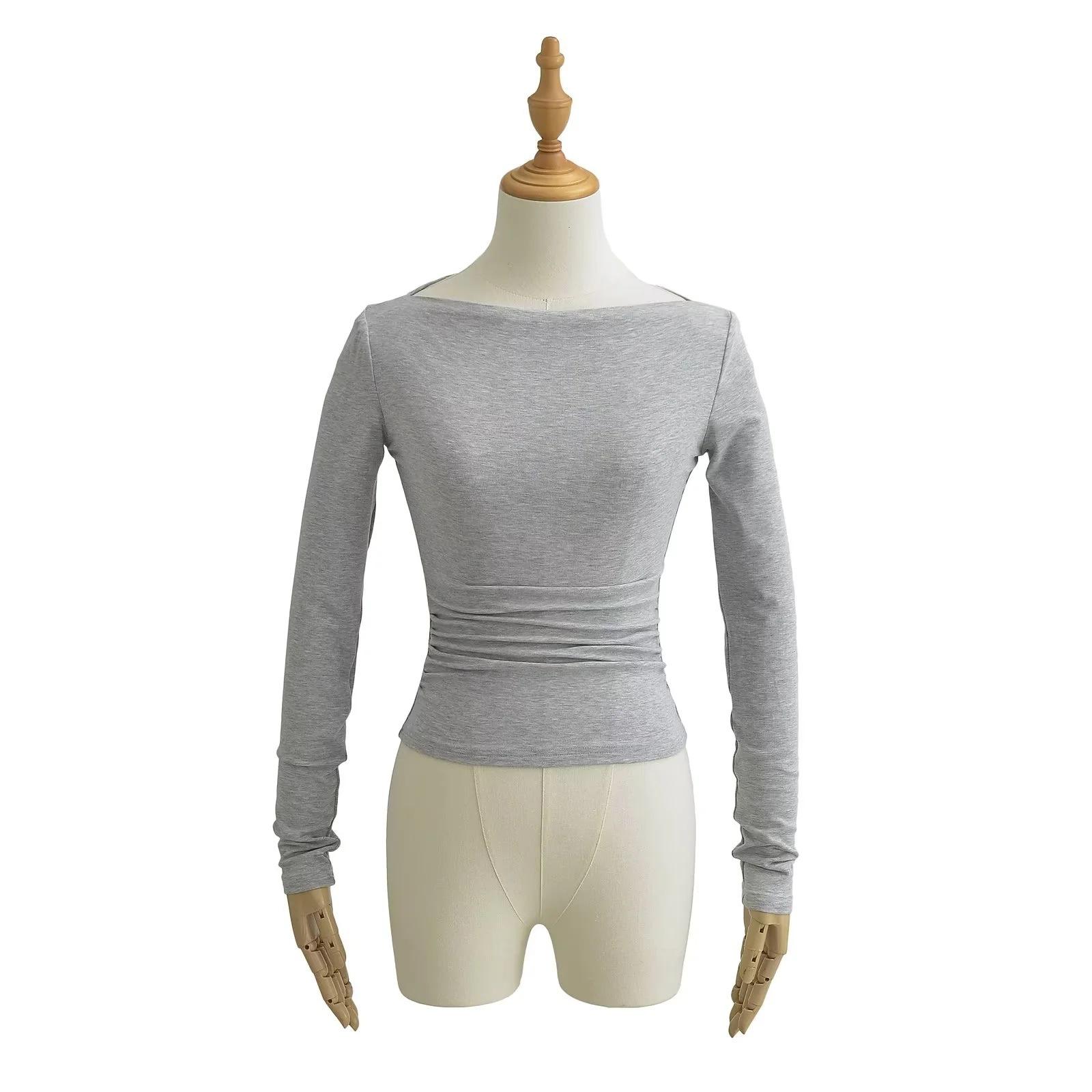 Elegante camiseta antiedad de manga larga para mujer, otoño 2024, nueva, top plisado con hombros descubiertos y cintura alta.
