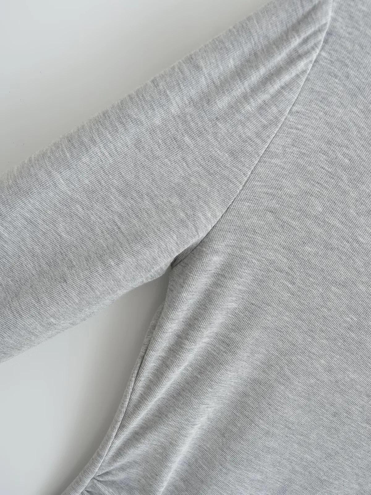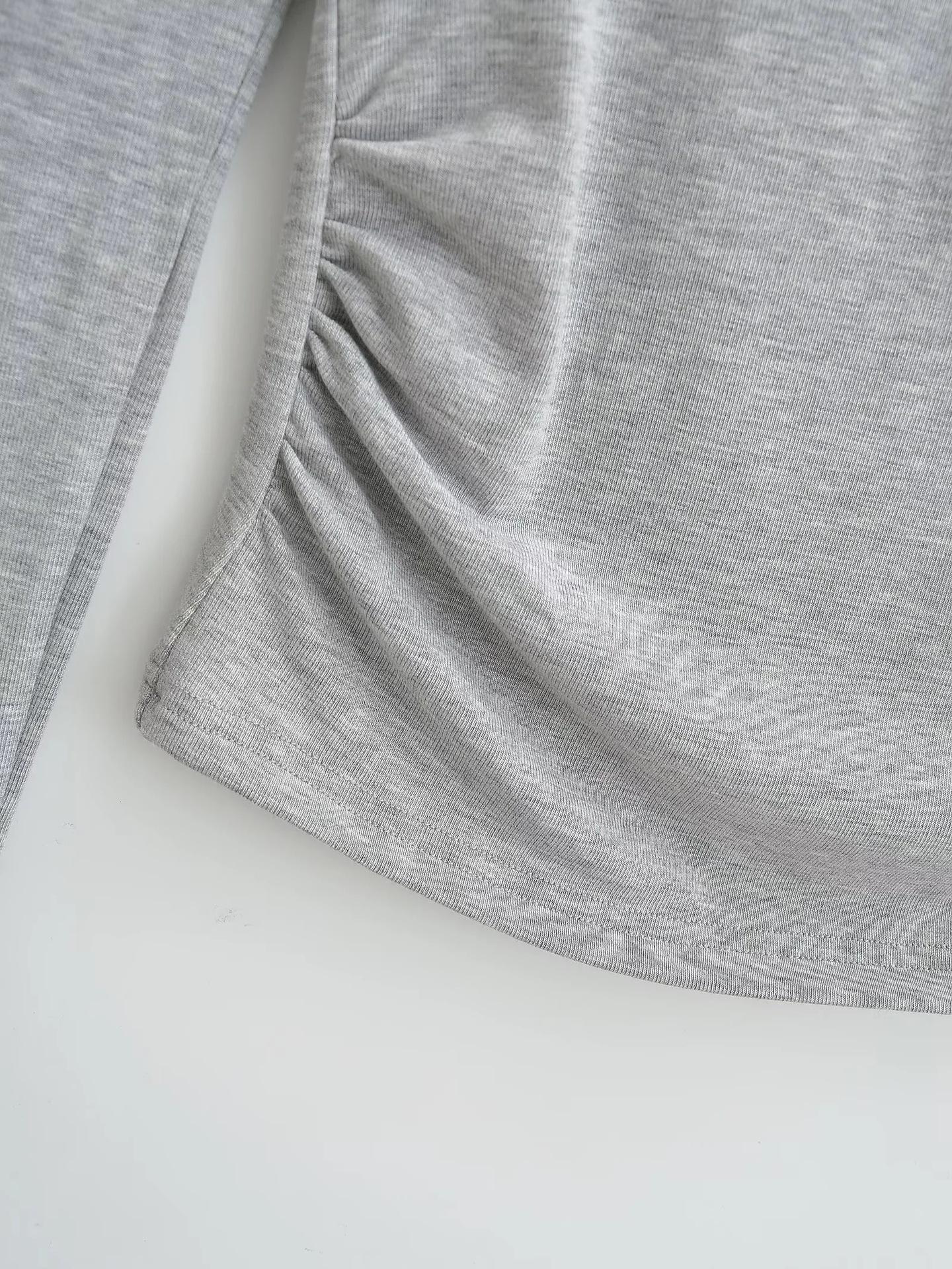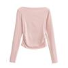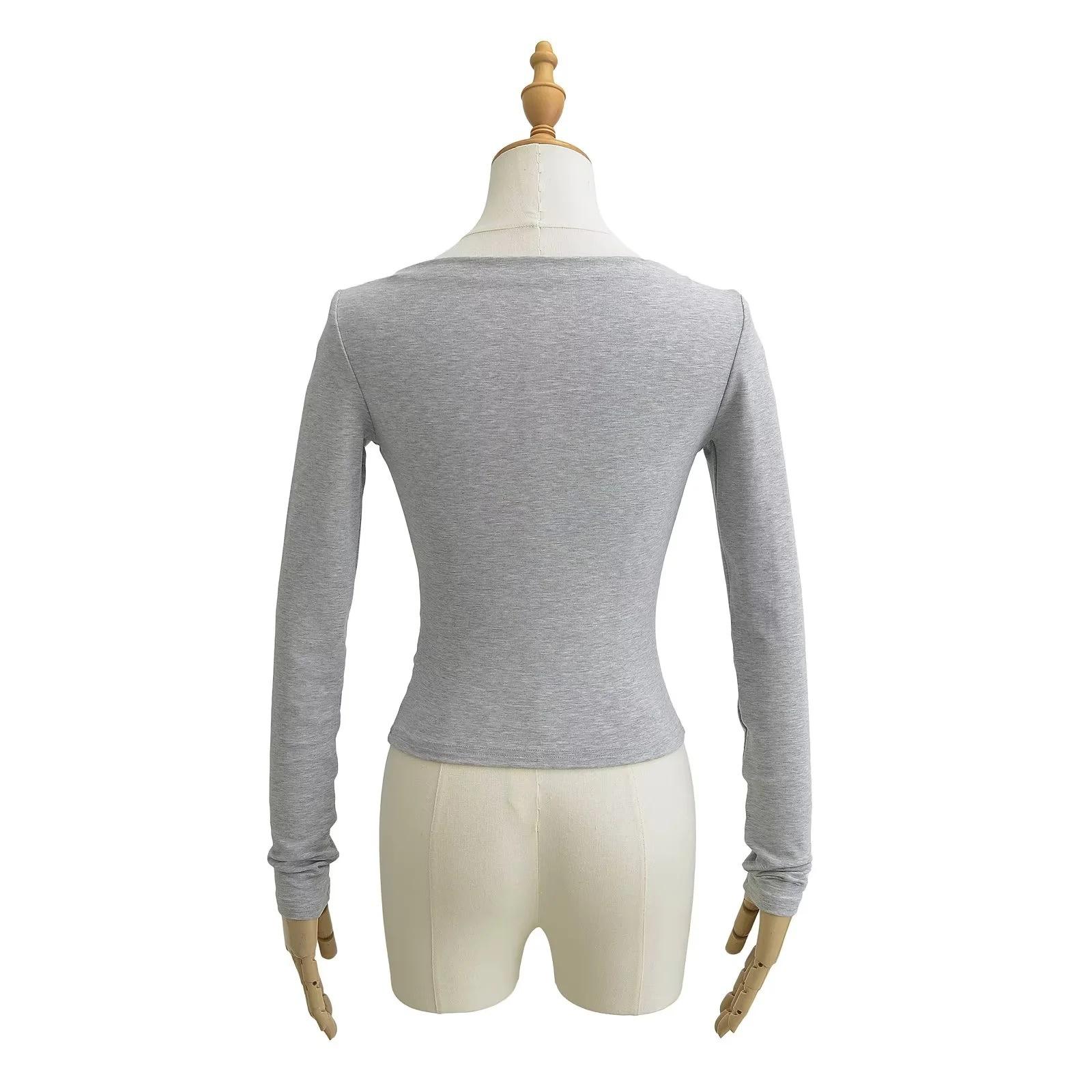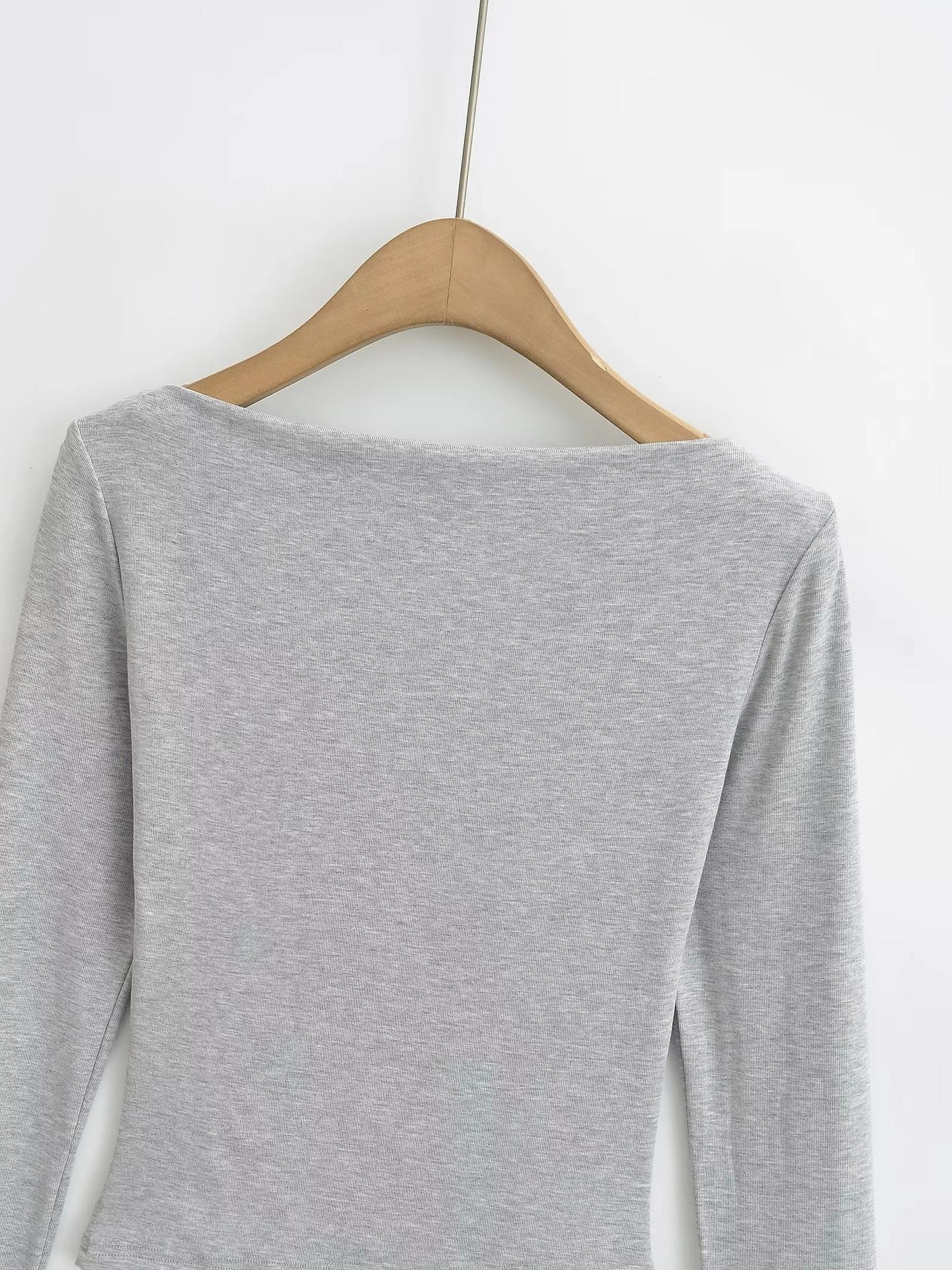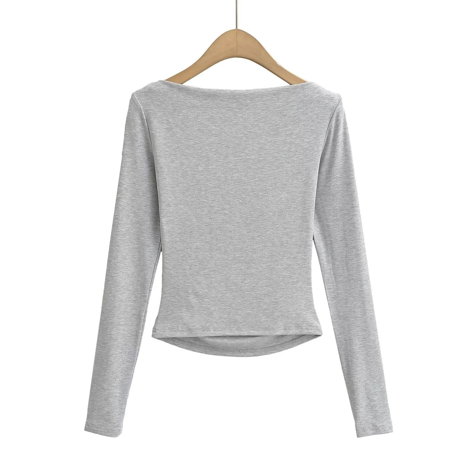 Elegante camiseta antiedad de manga larga para mujer, otoño 2024, nueva, top plisado con hombros descubiertos y cintura alta.