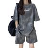 Conjunto de dos piezas de moda deportiva de verano para mujer, traje informal sencillo con pantalones cortos de manga corta para estudiantes
