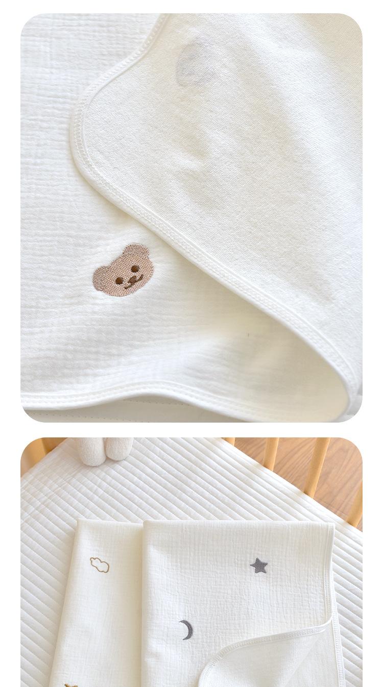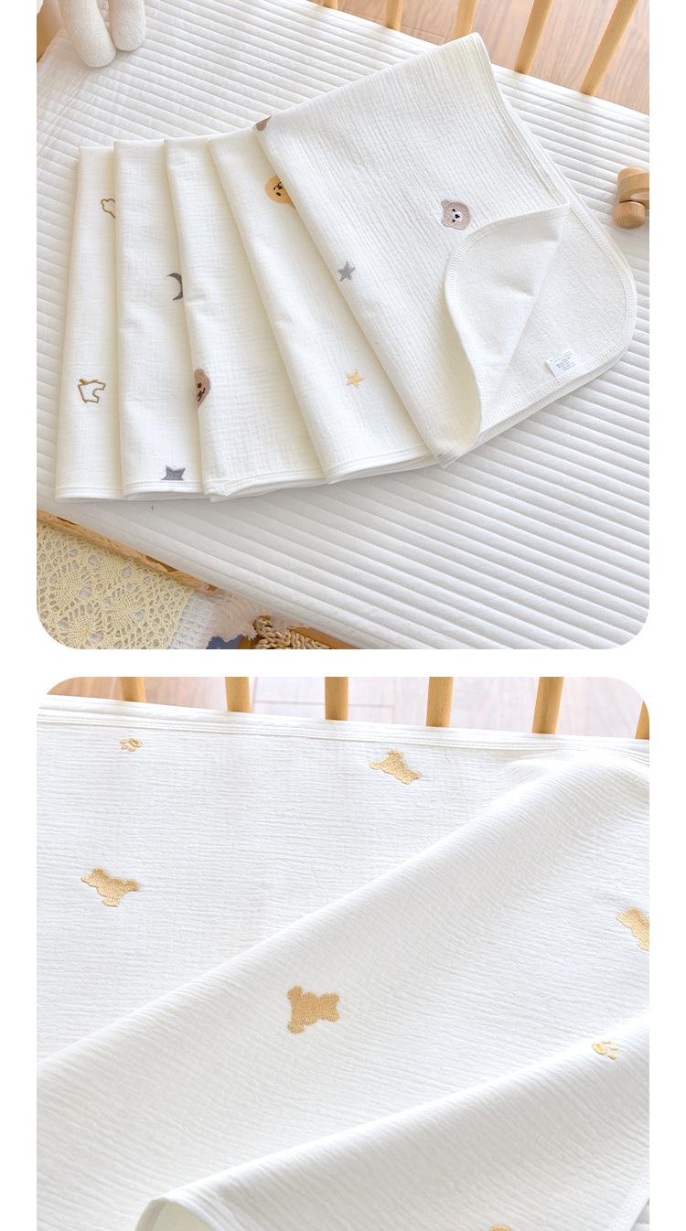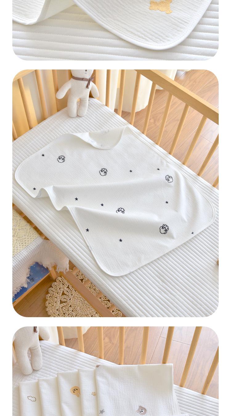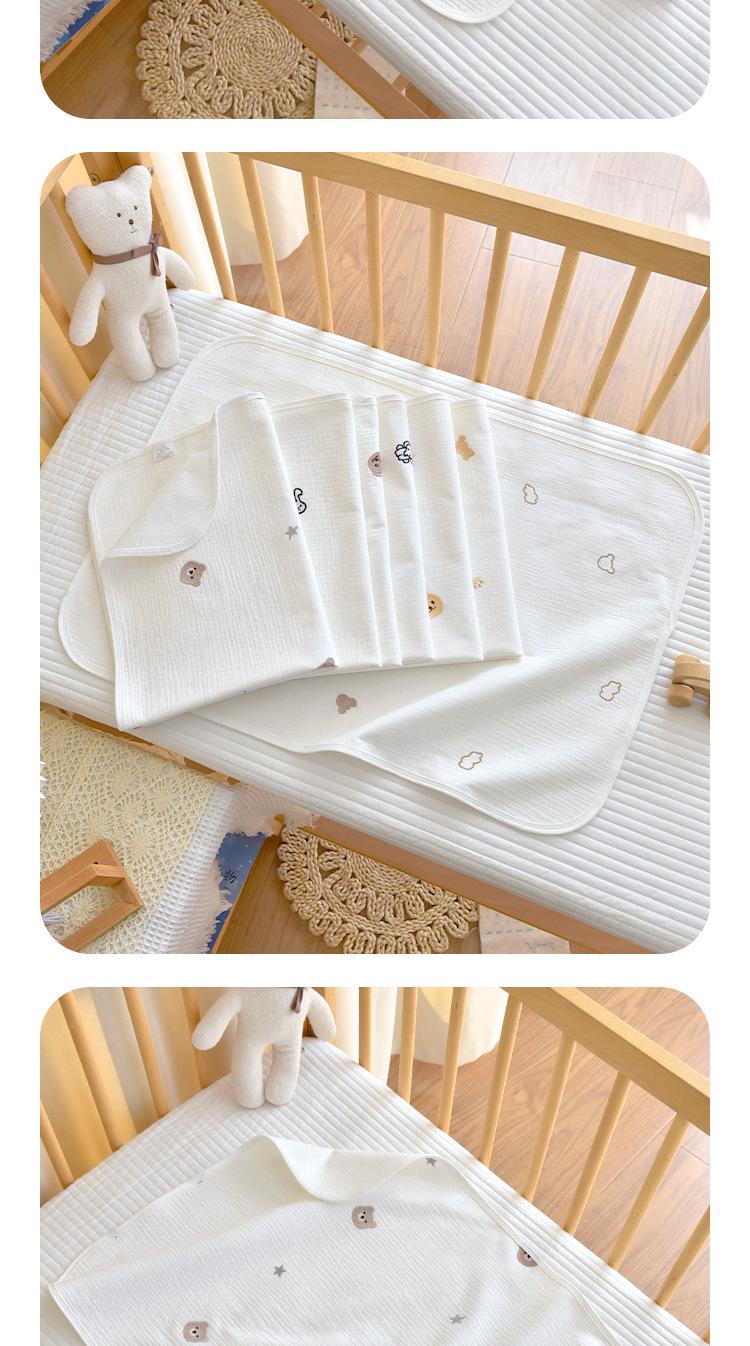 Almohadilla de pañal de rizo de algodón para bebé Tejido de gasa de crepé de puro algodón, que aporta comodidad al bebé. Estructura retráctil transpirable de tres capas, a prueba de orina y antiósmosis inversa. Bordado exquisito, delicado y suave sin bloquear la piel del bebé. Suave y agradable para la piel, bordes exquisitos, adecuado para todas las estaciones, calidad Clase A