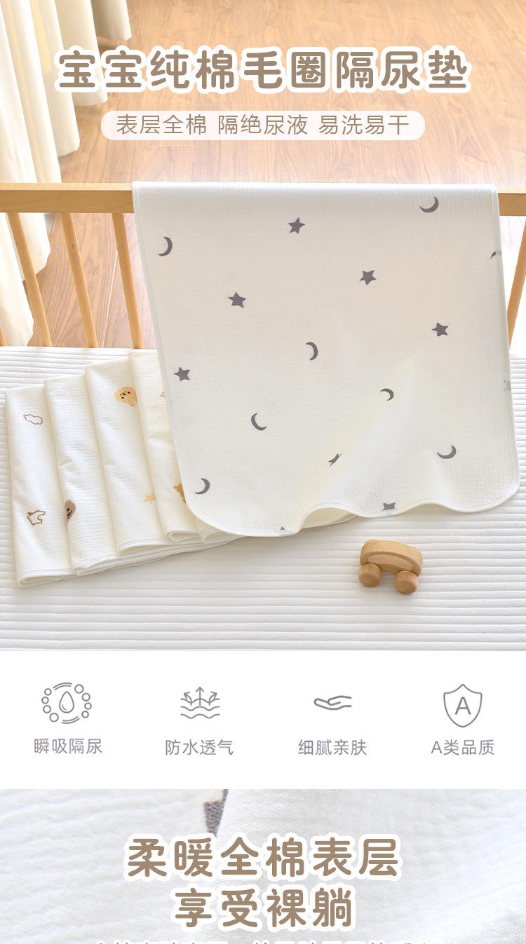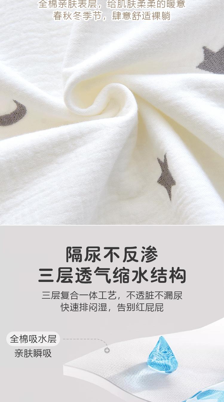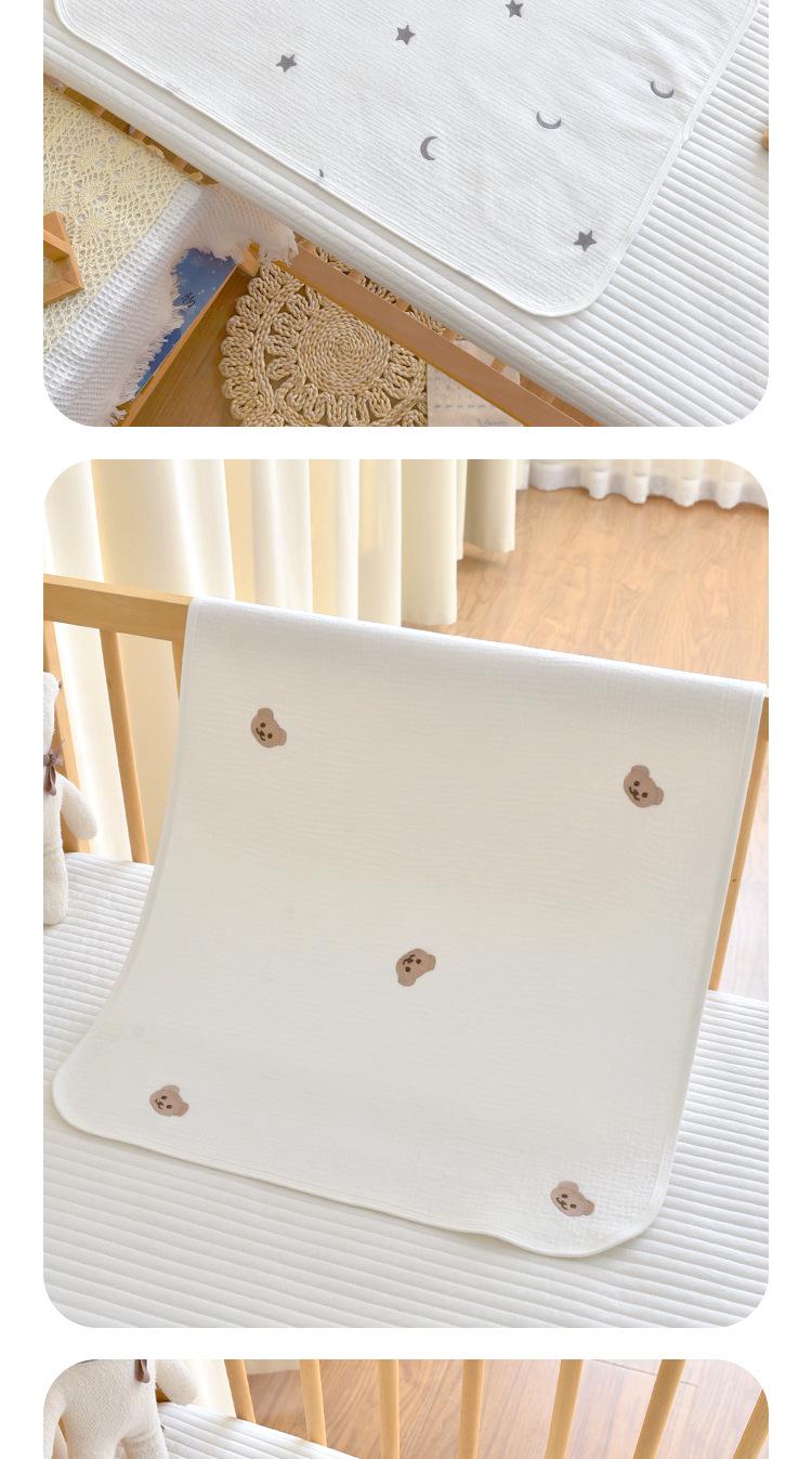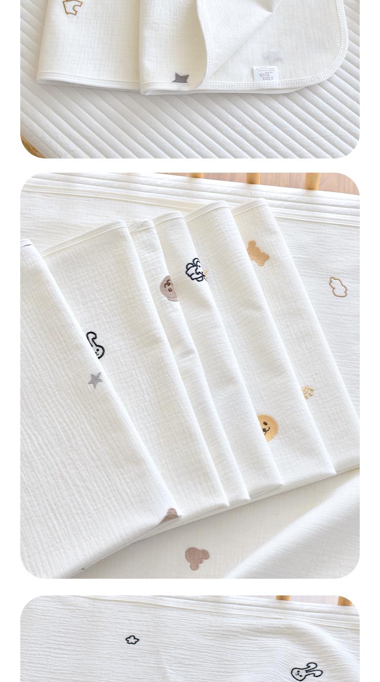 Almohadilla de pañal de rizo de algodón para bebé Tejido de gasa de crepé de puro algodón, que aporta comodidad al bebé. Estructura retráctil transpirable de tres capas, a prueba de orina y antiósmosis inversa. Bordado exquisito, delicado y suave sin bloquear la piel del bebé. Suave y agradable para la piel, bordes exquisitos, adecuado para todas las estaciones, calidad Clase A