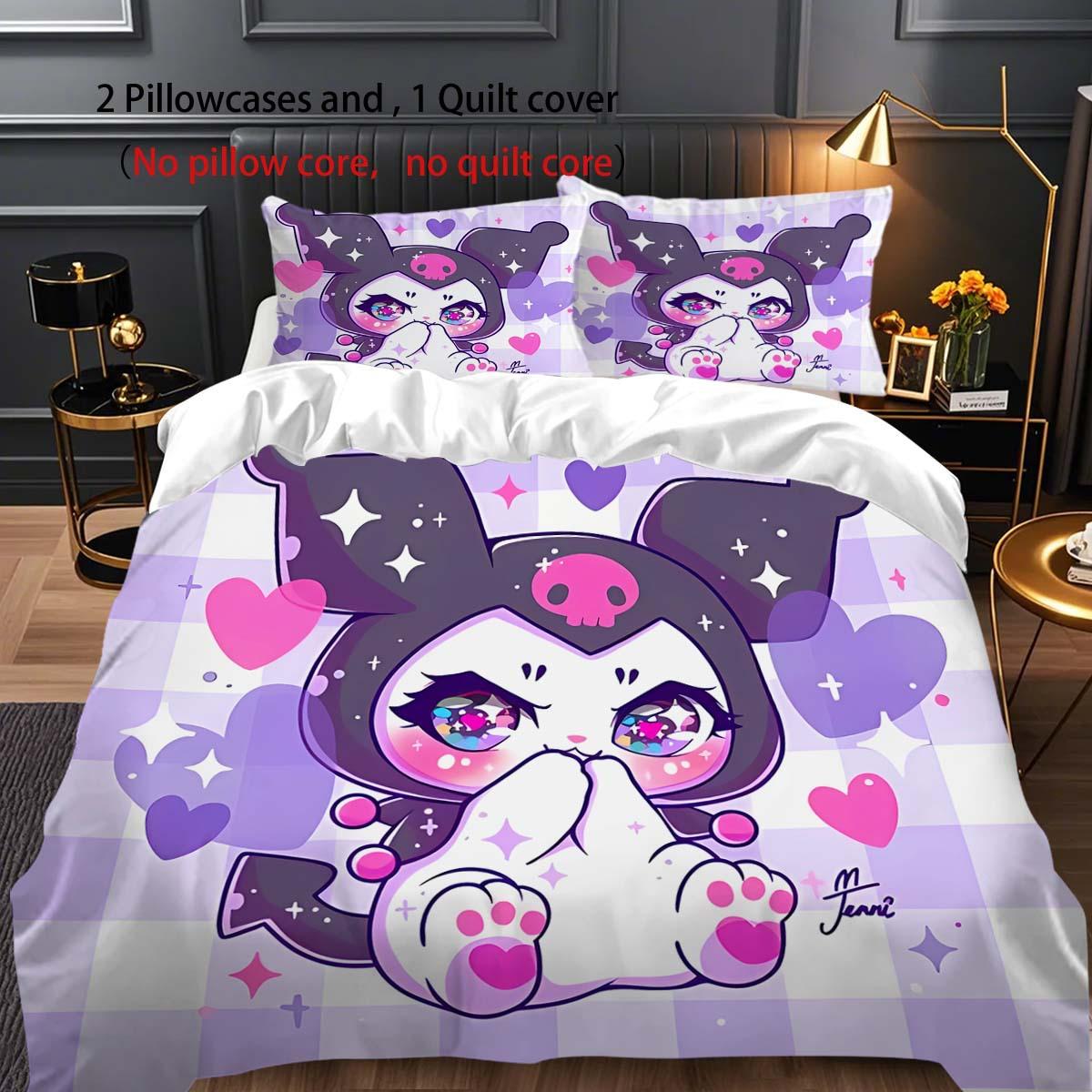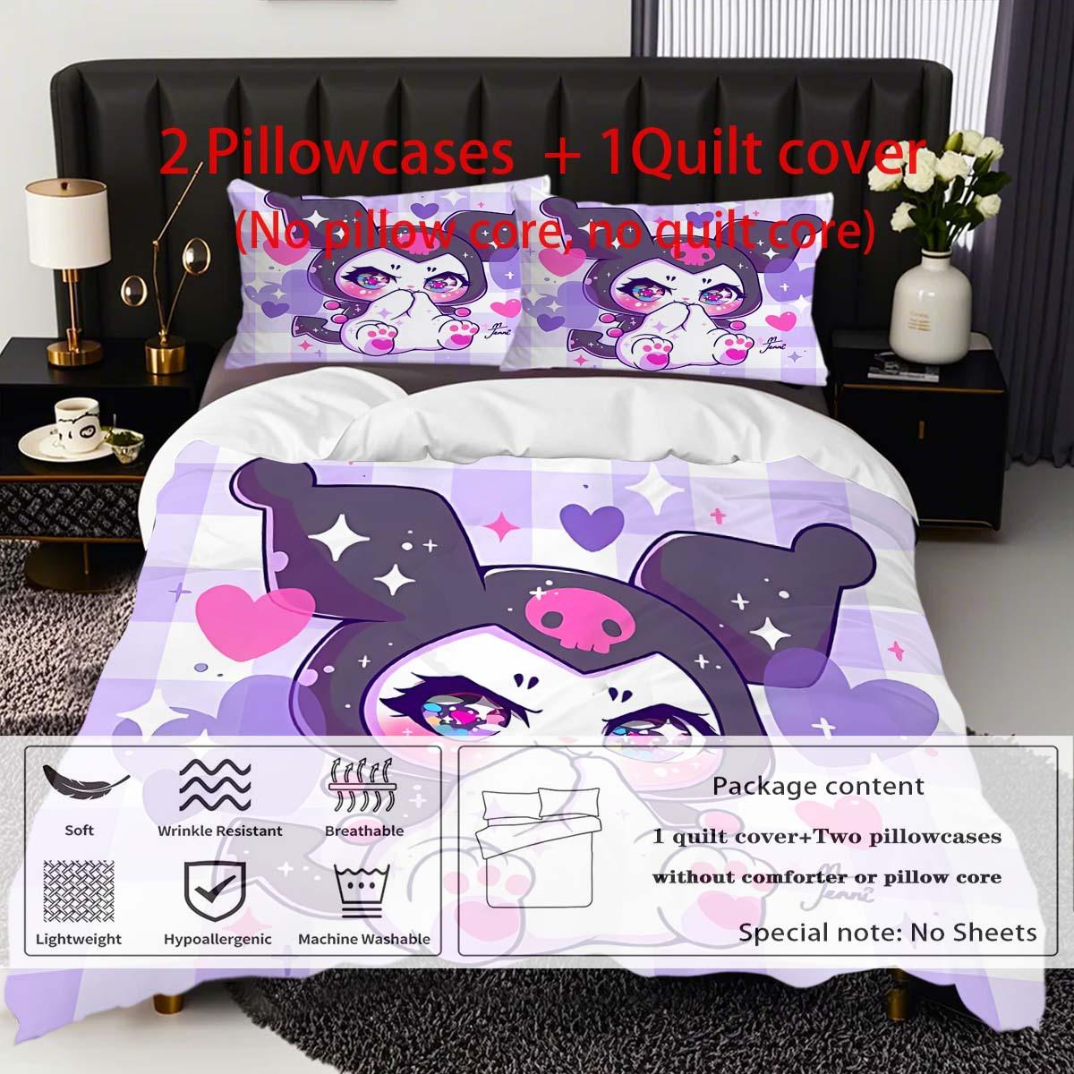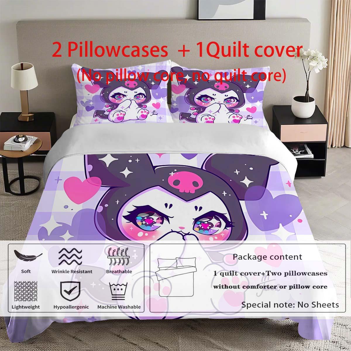 Ropa de cama de poliéster con estampado de Cartoon Sanrio Coolomi con 2 fundas de almohada 100% poliéster transpirable