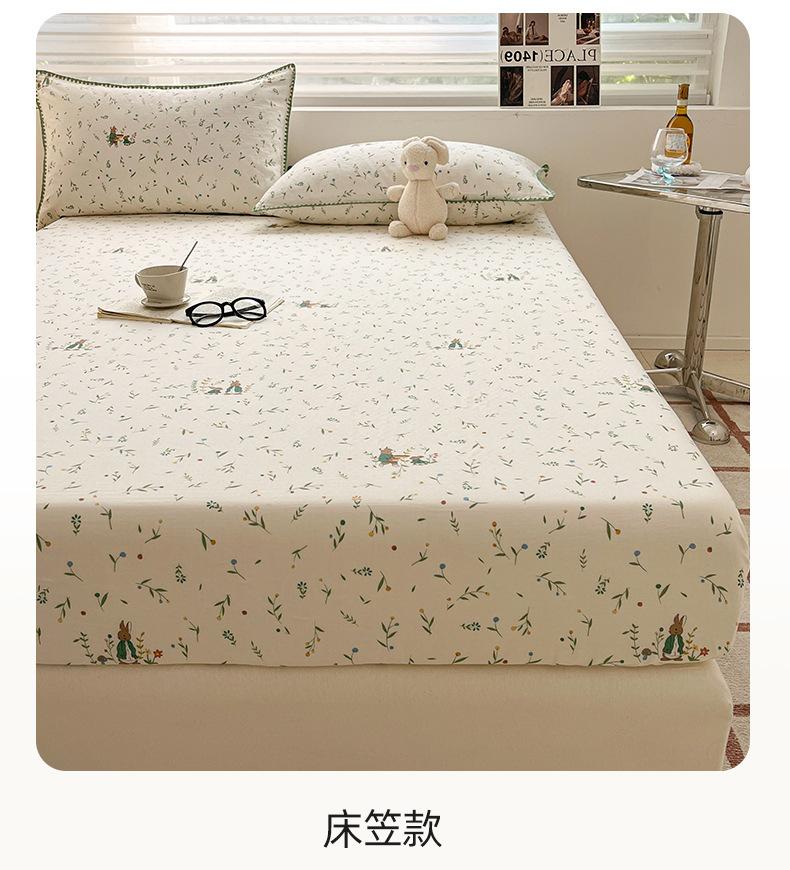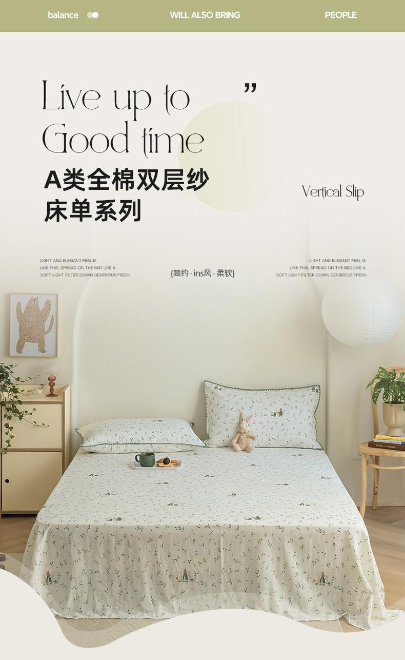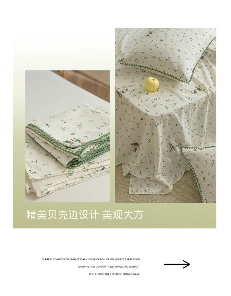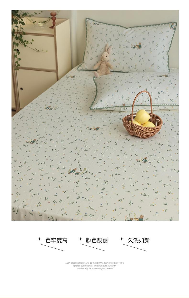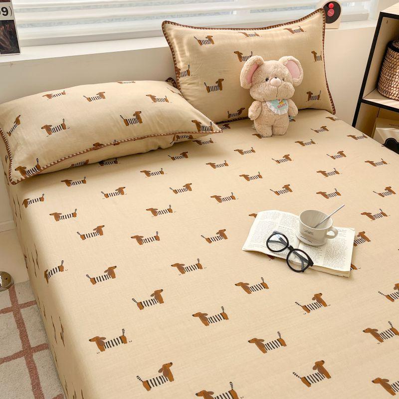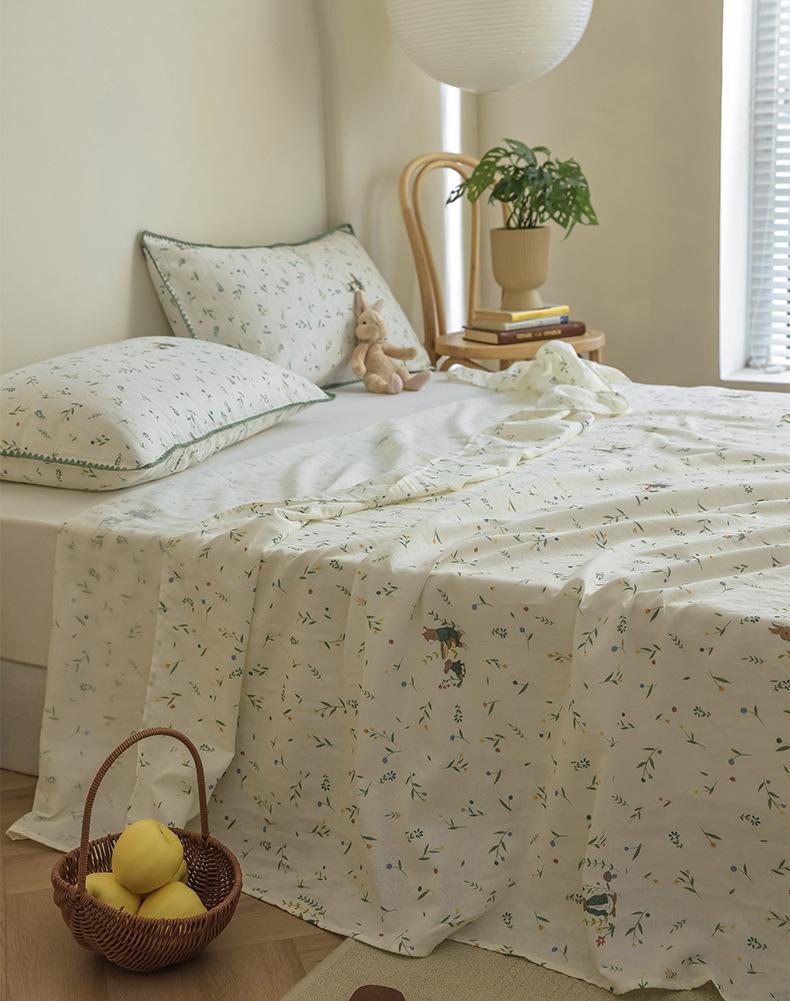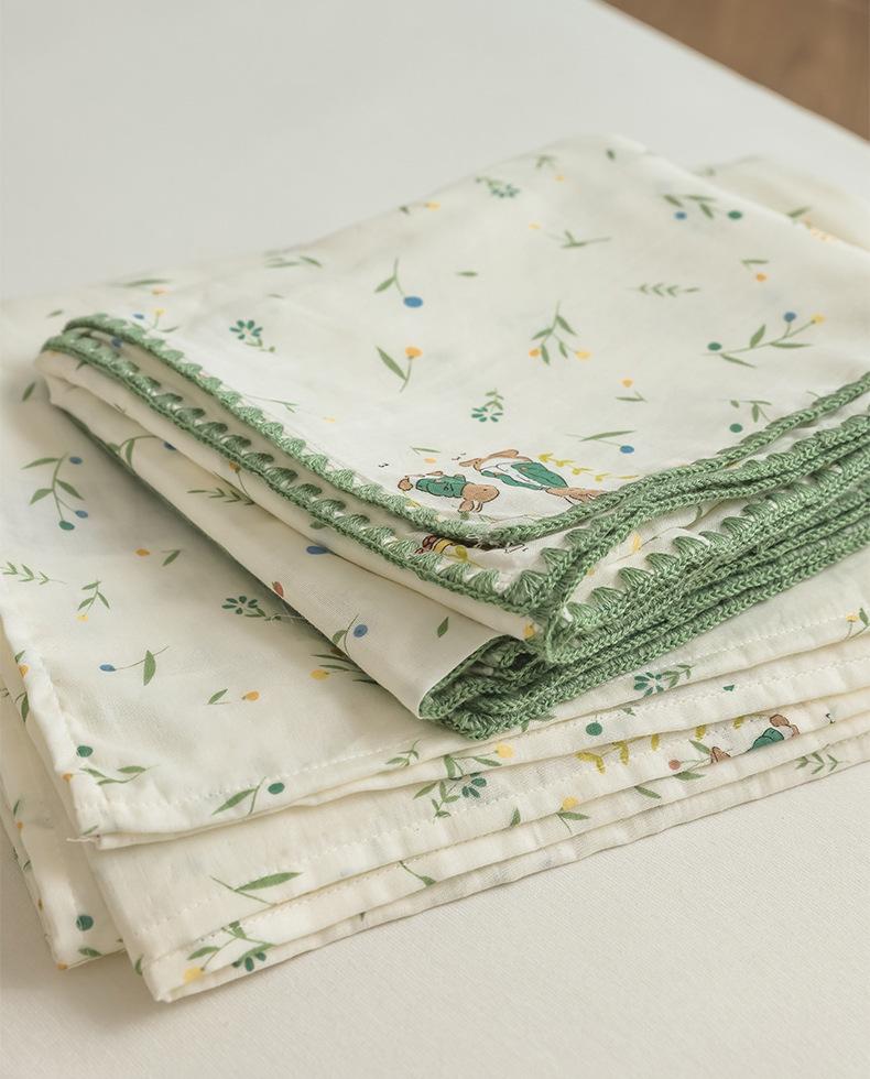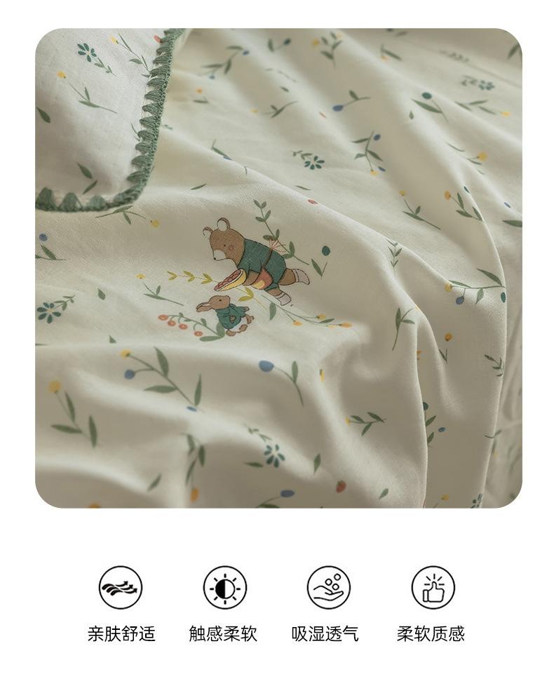 Gorro de cama de hilo de doble capa de grado materno e infantil de clase A, sábana de gasa de dibujos animados de tres piezas de algodón 100% de una sola pieza, colcha suave