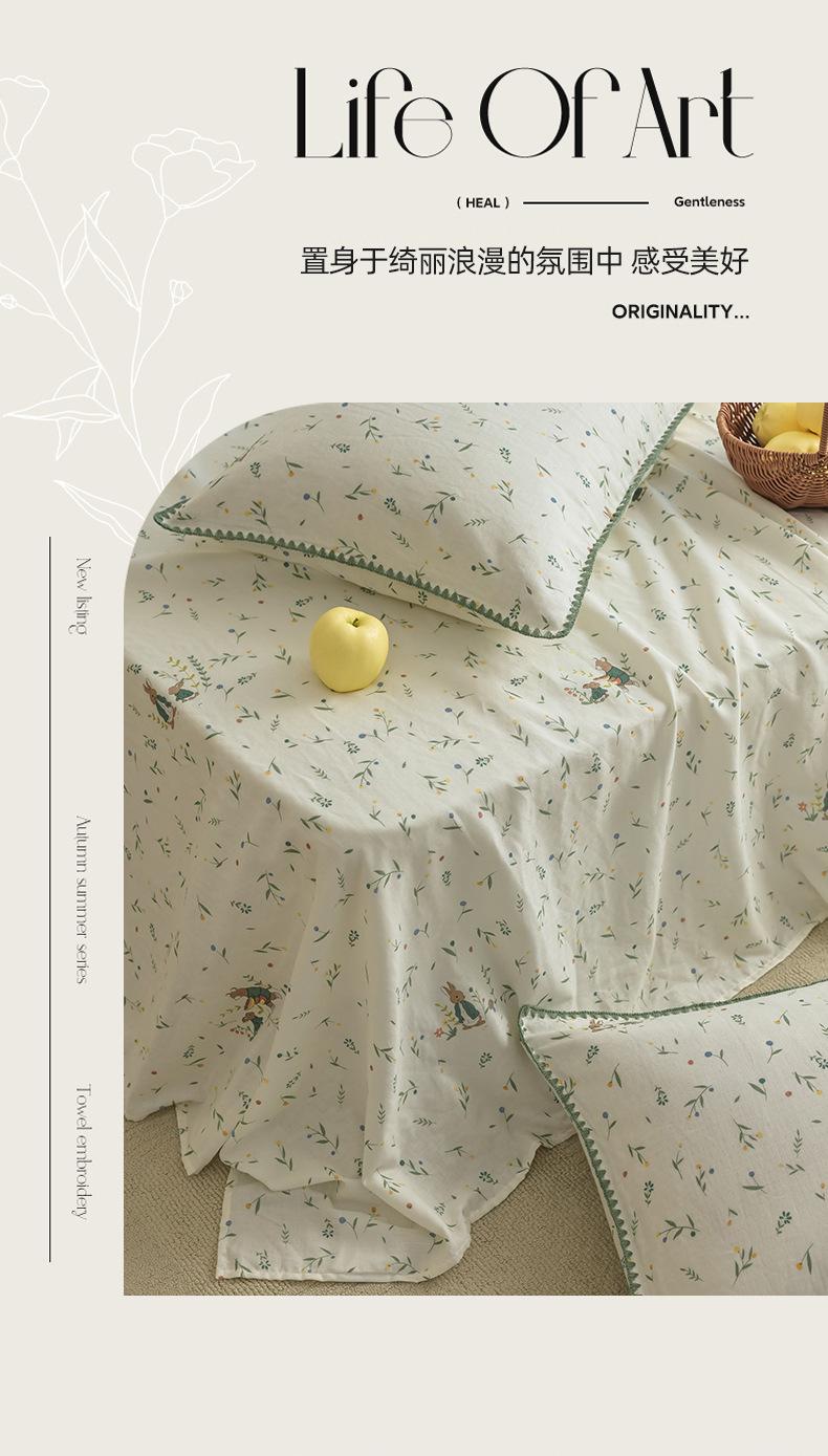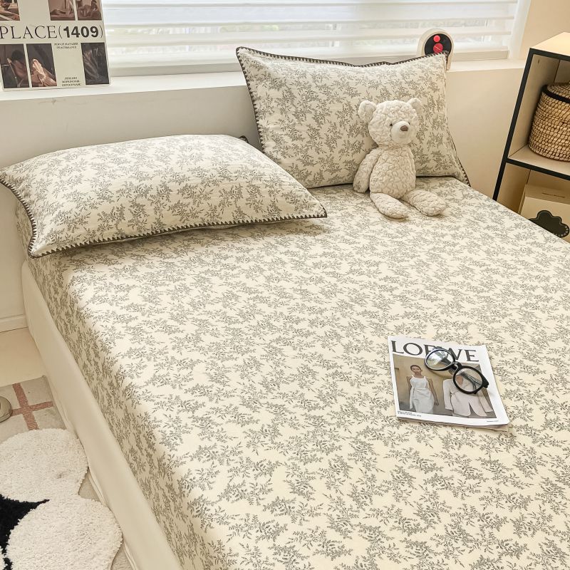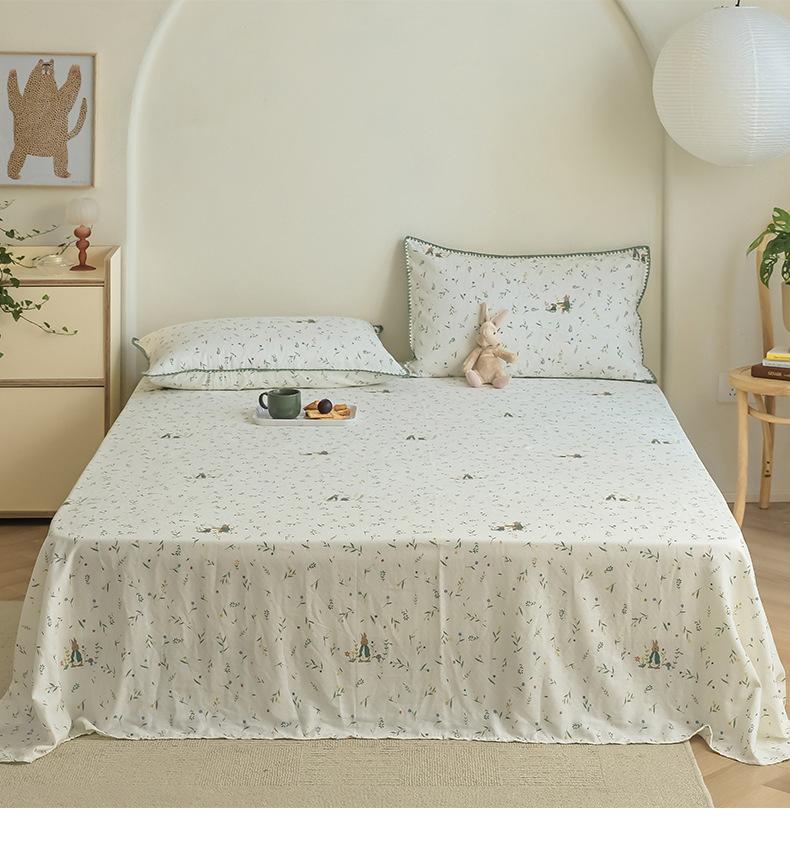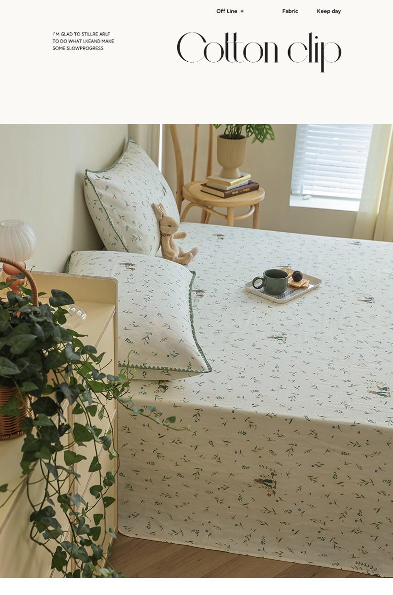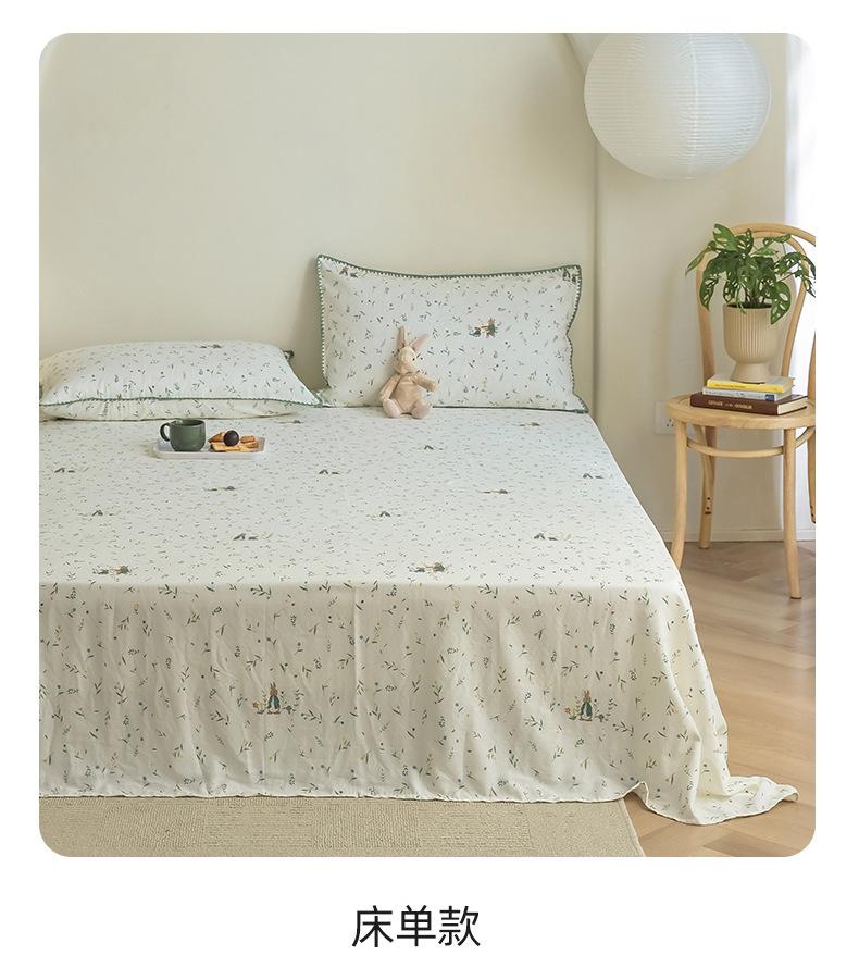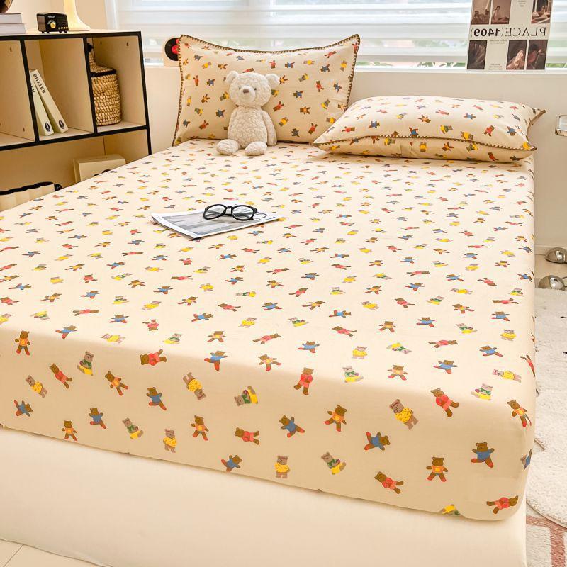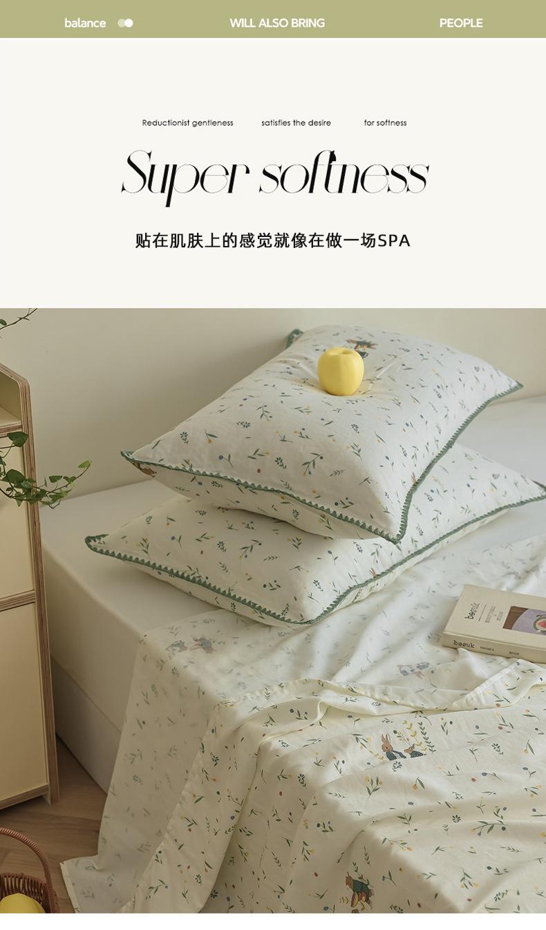 Gorro de cama de hilo de doble capa de grado materno e infantil de clase A, sábana de gasa de dibujos animados de tres piezas de algodón 100% de una sola pieza, colcha suave