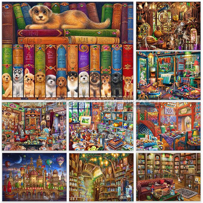 Pintura de diamantes DIY, mosaico de animales redondo completo, paisaje infantil, bordado de diamantes, arte de diamantes de imitación, decoración del hogar