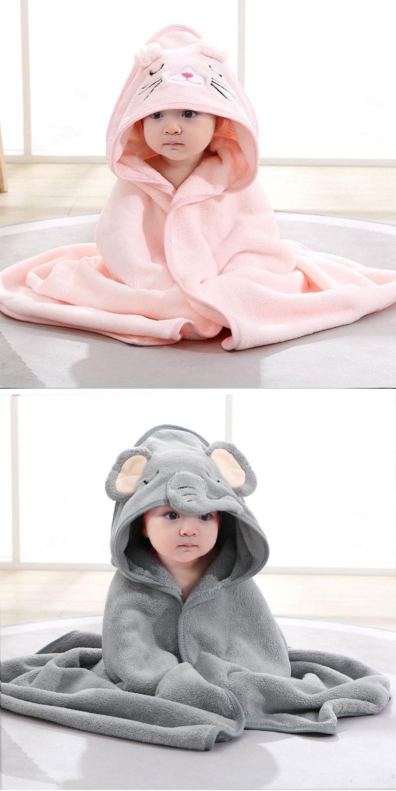 Capa con capucha para bebé, manta de forro polar coral con bordado de dibujos animados, toalla de baño para niños, bolsa de baño suave y absorbente para bebé