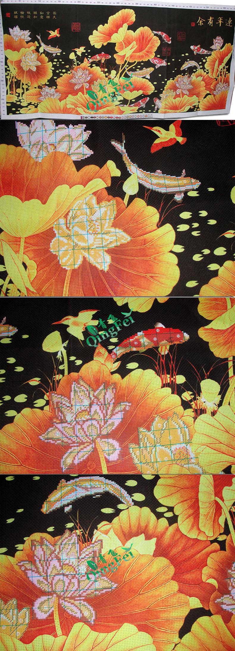(Para la versión 3D, solo necesitas bordar peces dorados y lotos)