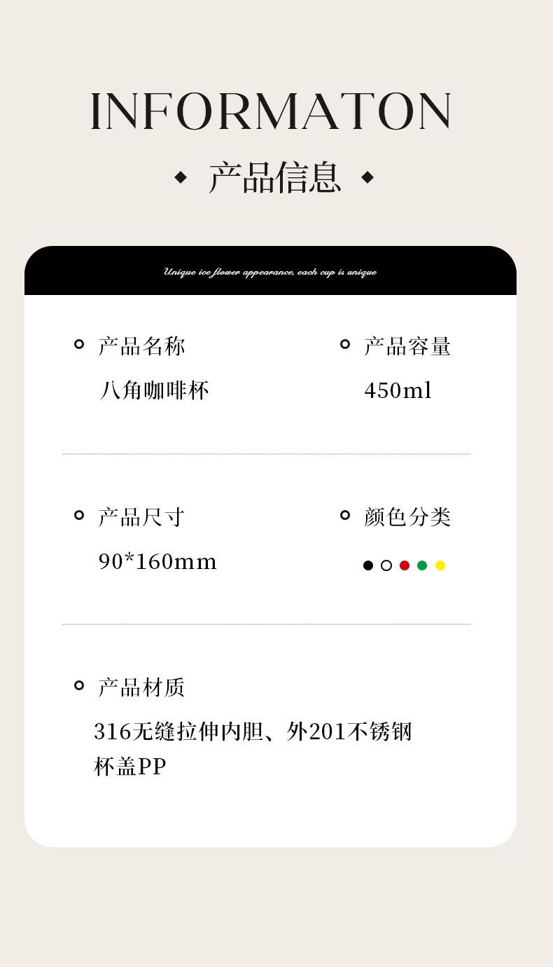 Termo octogonal de acero inoxidable 316, simple, de alto valor cromático, para café, lacado, portátil, para deportes al aire libre.