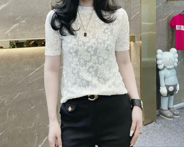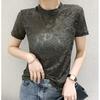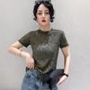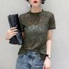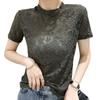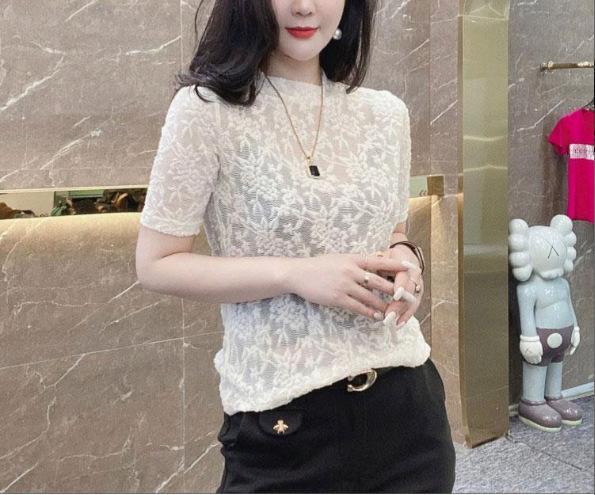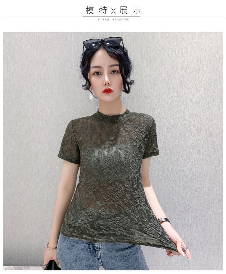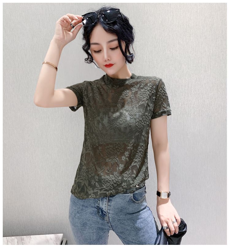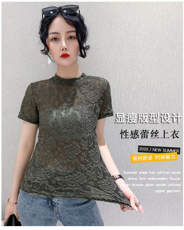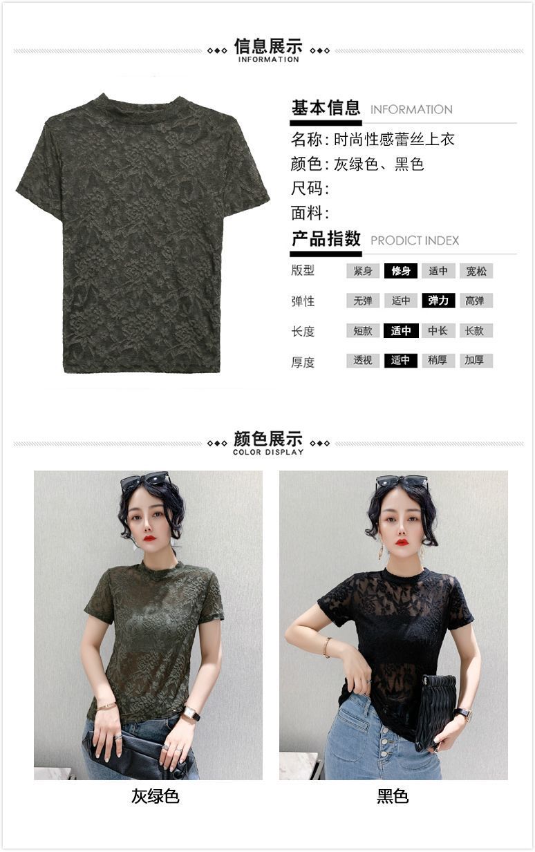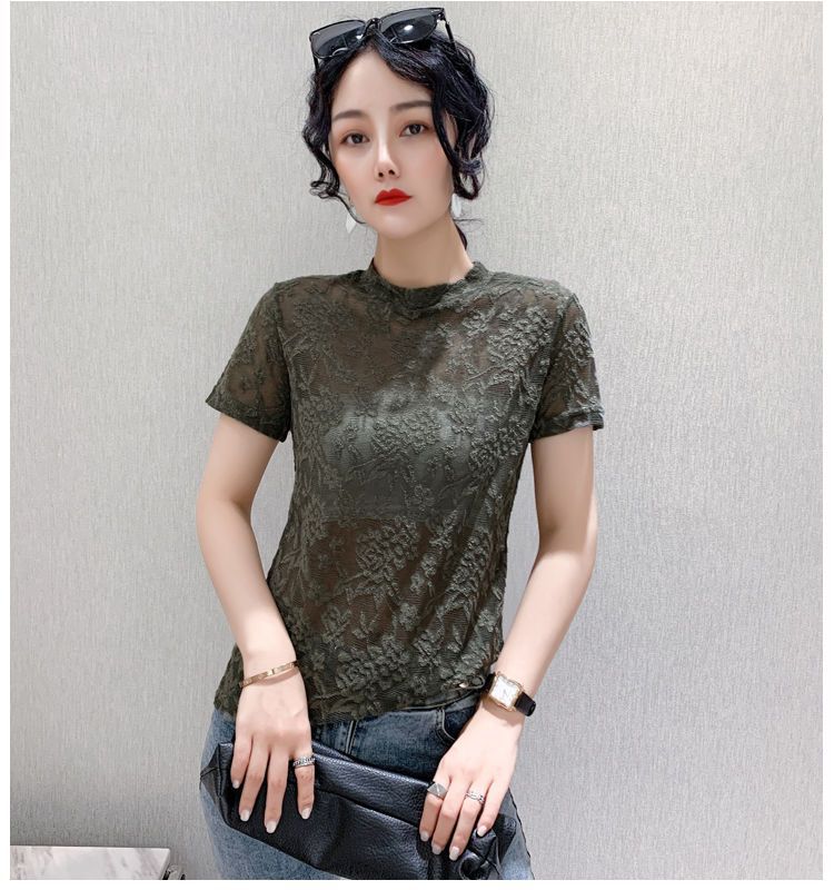 [Enviar sin tirantes] Camiseta de manga corta de encaje con protección solar de manga corta para mujer, Estación Europea, Hueca, Estilo Occidental, Camiseta base de malla