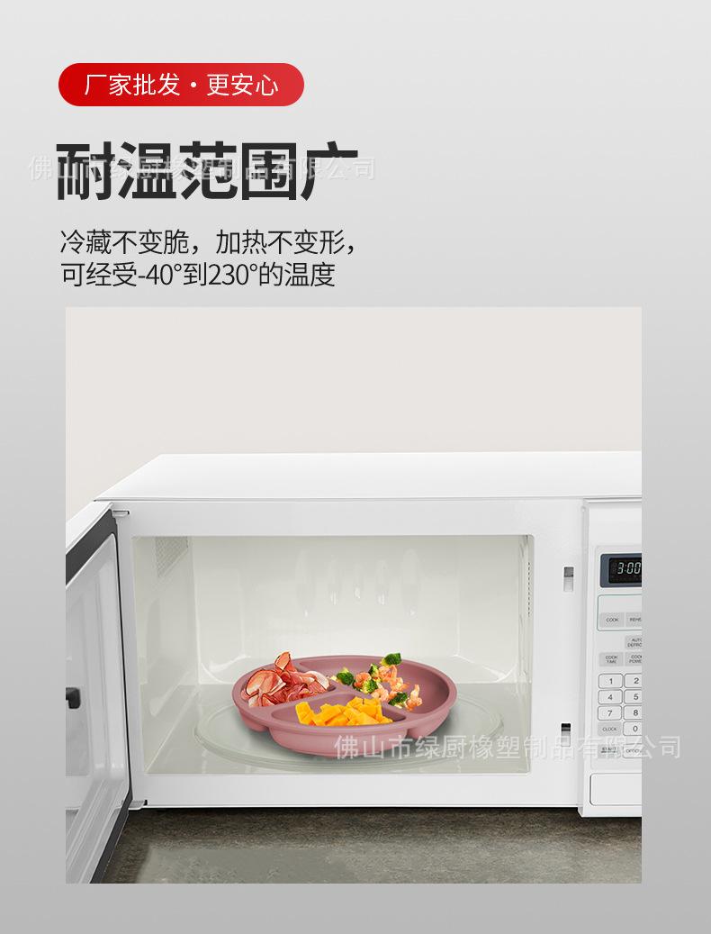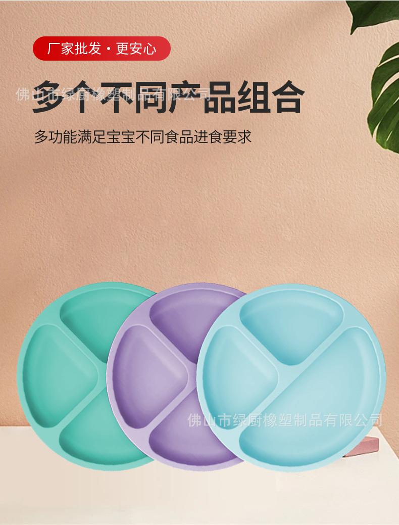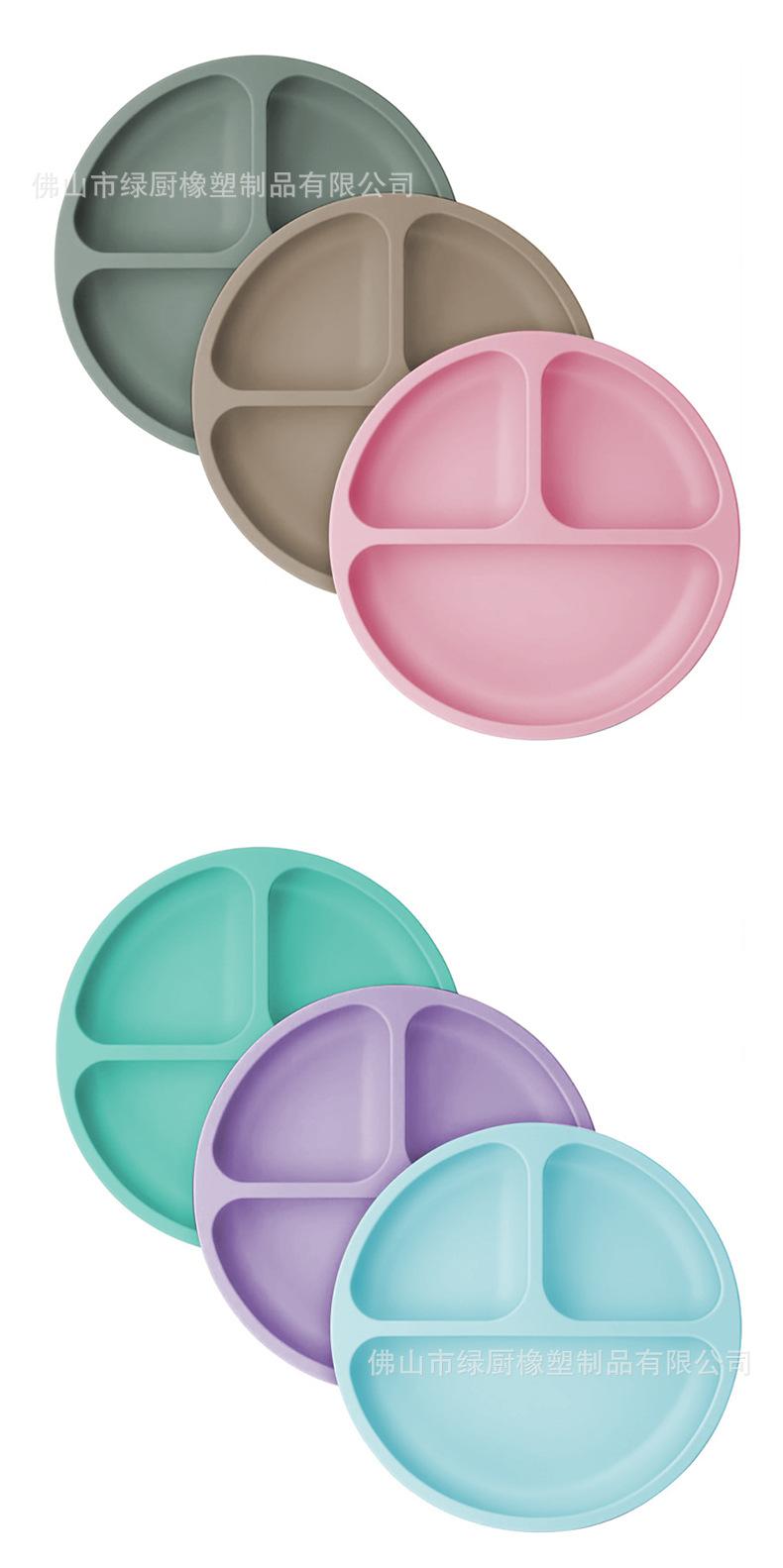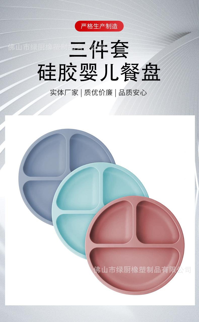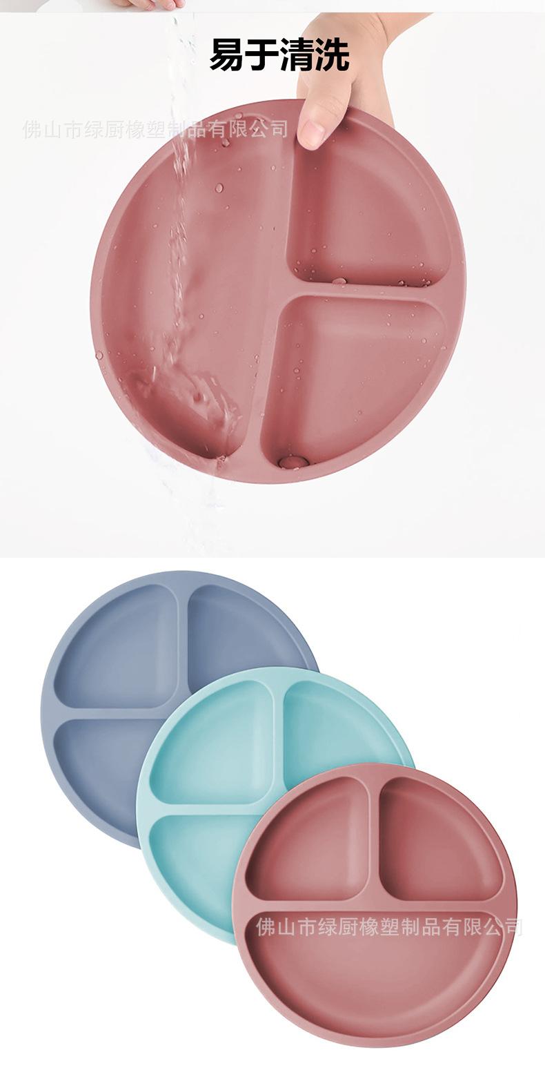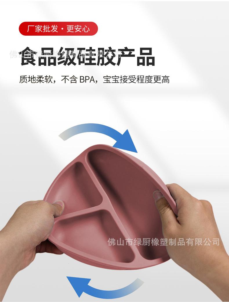 Vajilla infantil antiexplosiones de silicona, bandeja de succión, plato de cena de tres compartimentos, cuenco de entrenamiento de alimentos complementarios anticaídas, cuenco de cena de silicona
