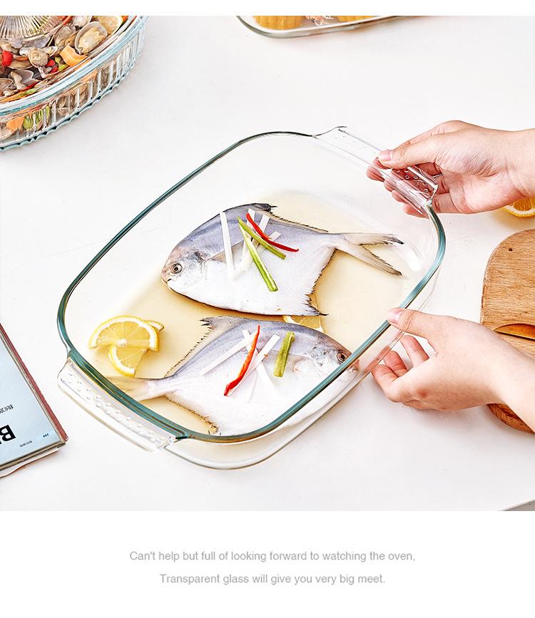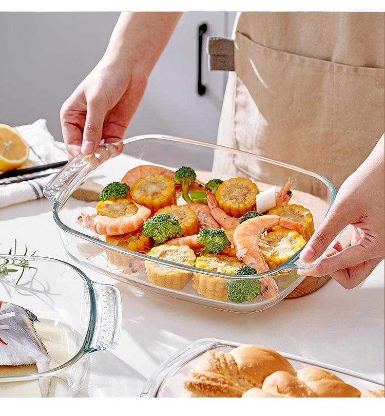 High borosilicate heat-resistant glass pitted 2L binaural baking pan