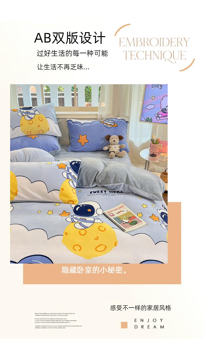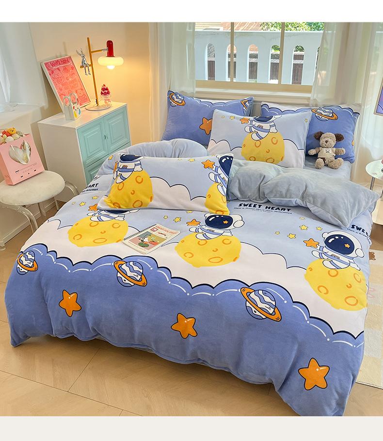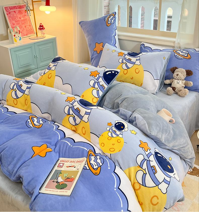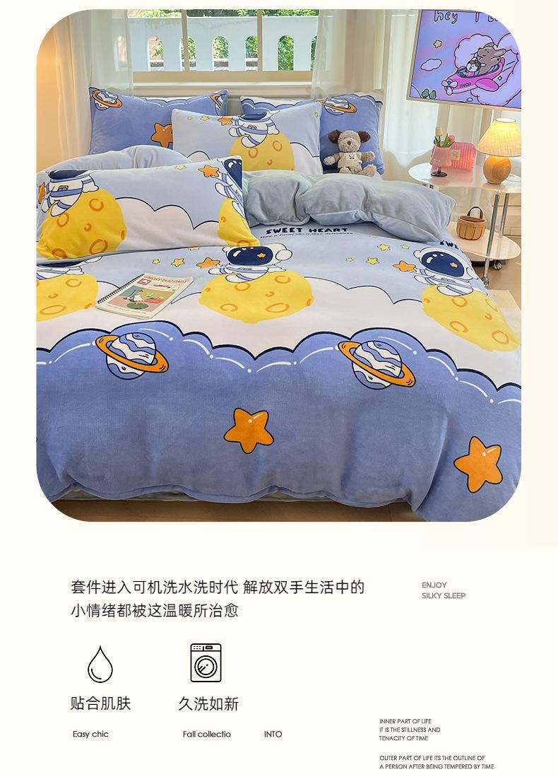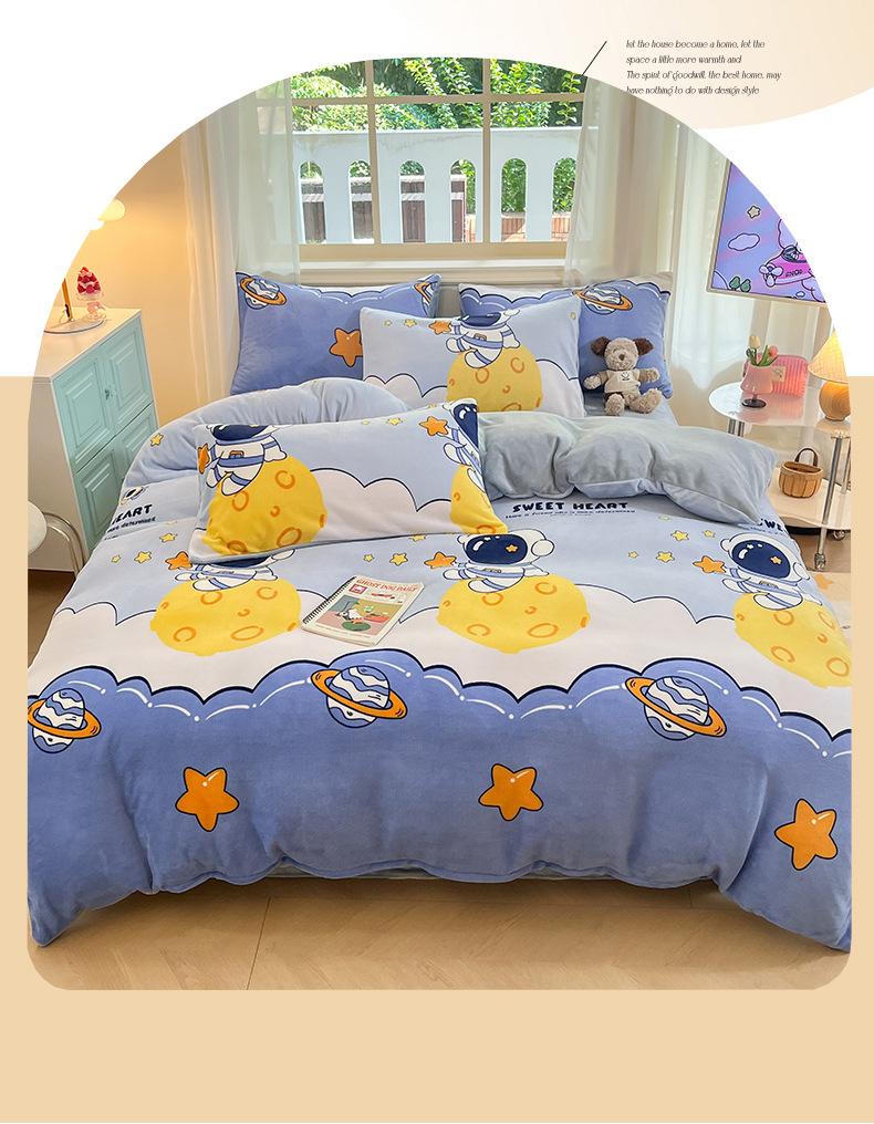 Juego de cama de terciopelo de leche espesado de invierno de cuatro piezas, edredón de franela de terciopelo de doble cara, forro polar coral, sábana y juego de cama de tres piezas