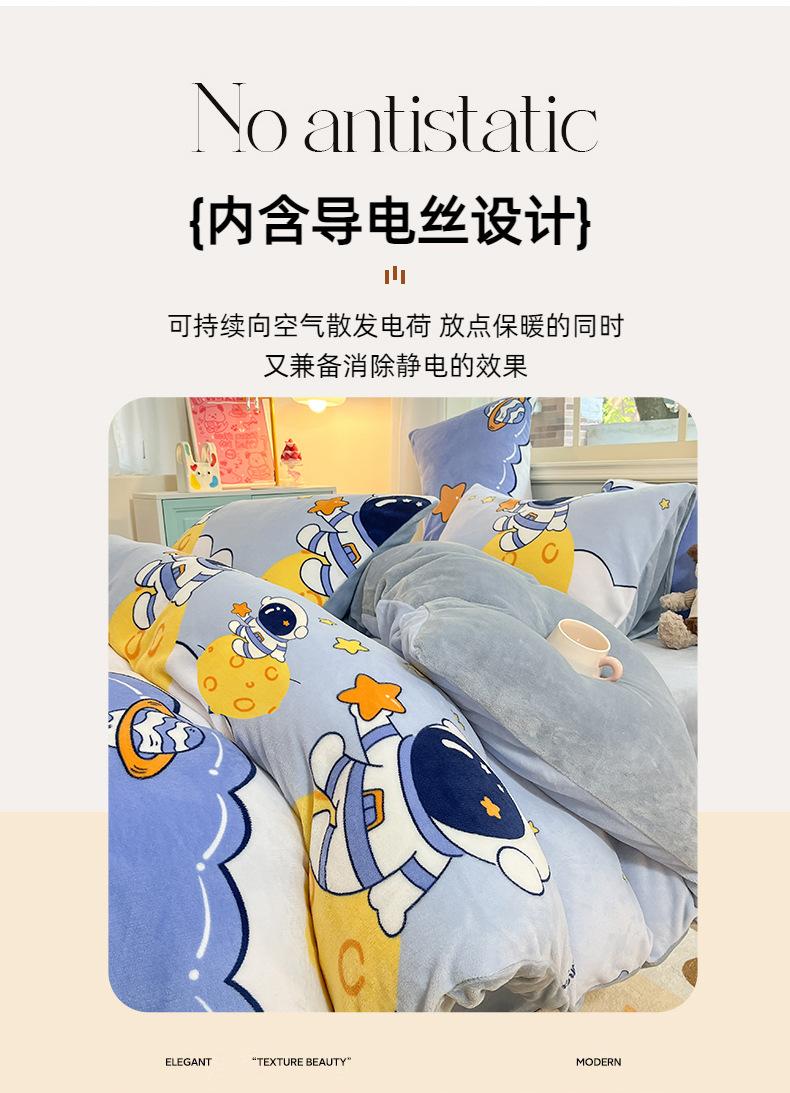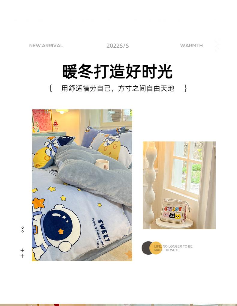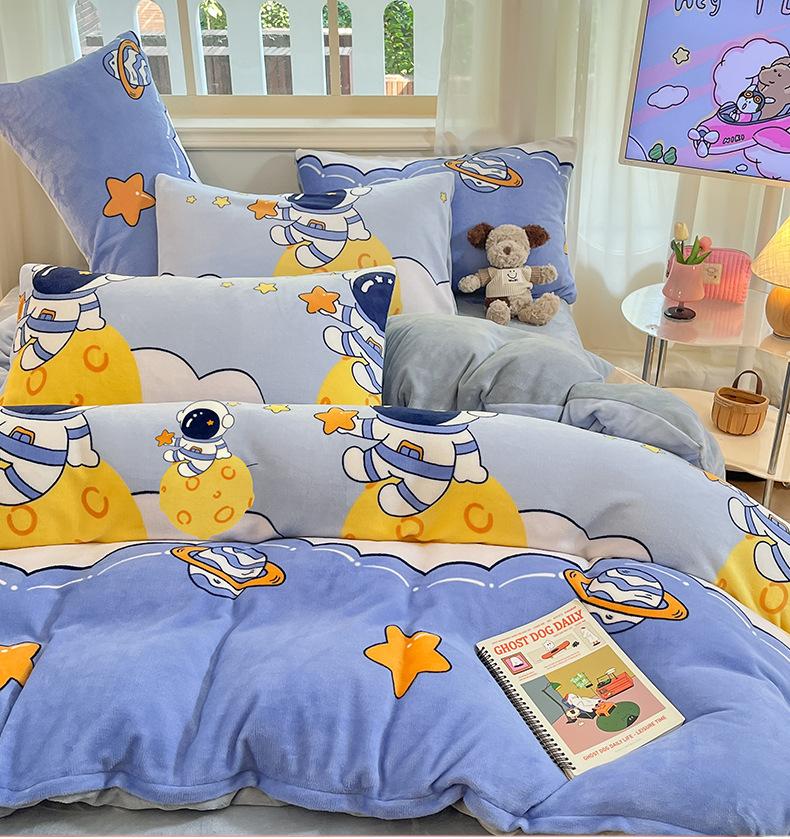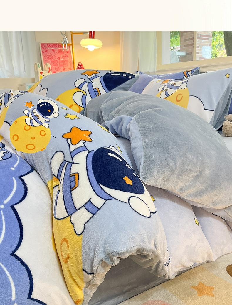 Juego de cama de terciopelo de leche espesado de invierno de cuatro piezas, edredón de franela de terciopelo de doble cara, forro polar coral, sábana y juego de cama de tres piezas
