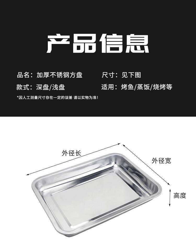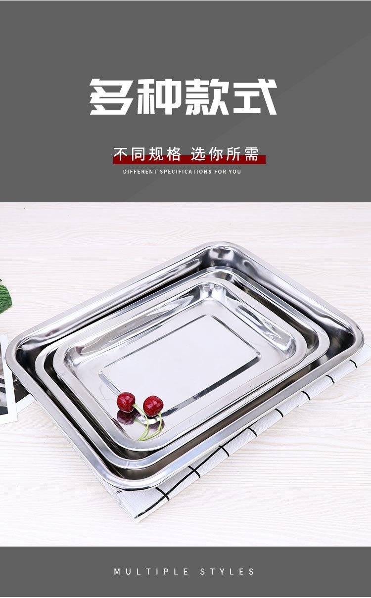 Plato cuadrado fino de acero inoxidable, bandeja rectangular, plato de hierro, plato de barbacoa comercial, plato para dumplings, plato de arroz al vapor para el hogar