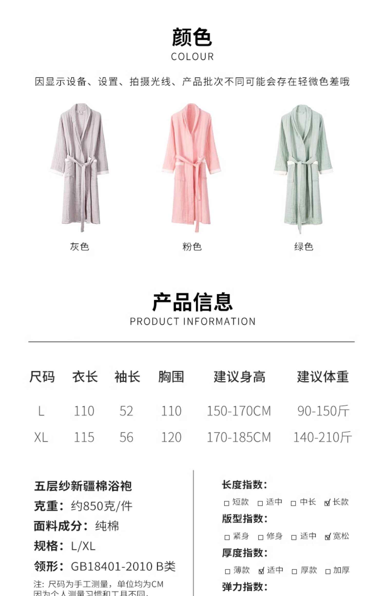 Spring and summer gray (three-layer gauze partial placket style)