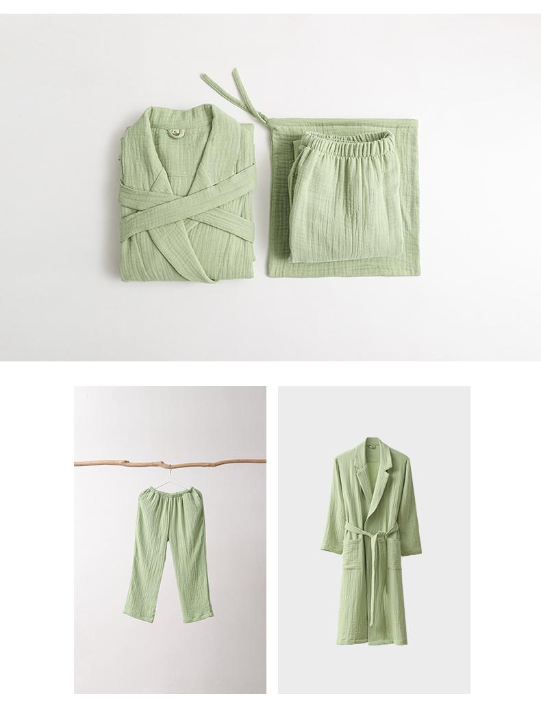 Summer double layer gauze kimono collar-green