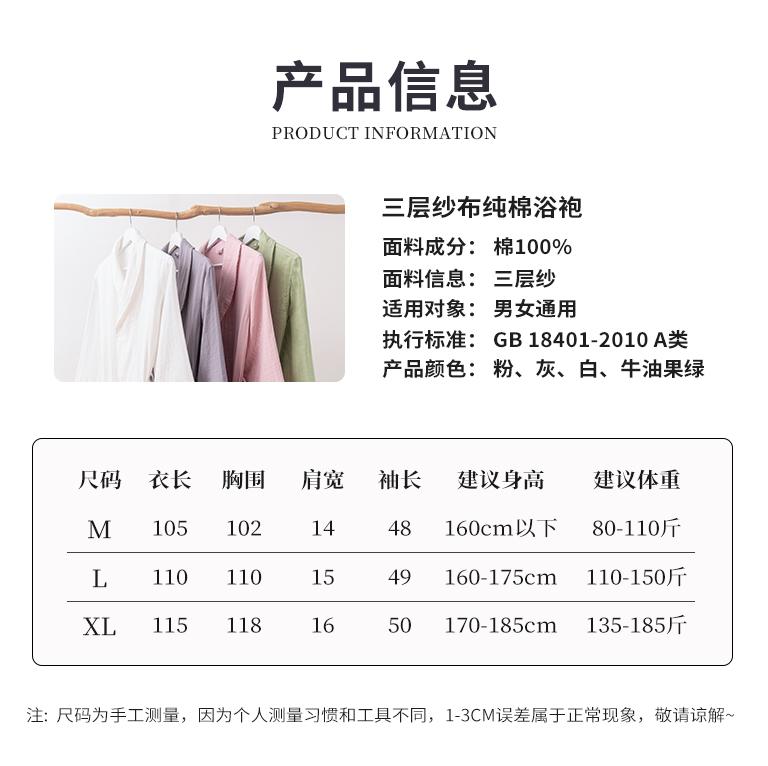 Albornoz de gasa de algodón grueso de otoño e invierno, absorbente, de secado rápido, para adultos, hombres y mujeres, para bañarse, para parejas de hombres, pijamas de baño de cuatro estaciones