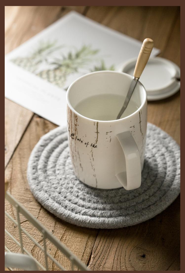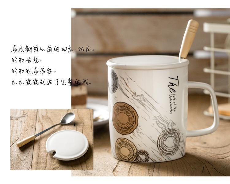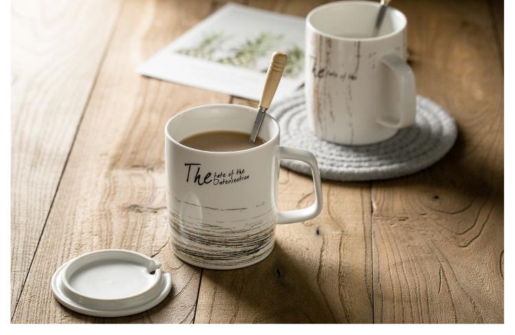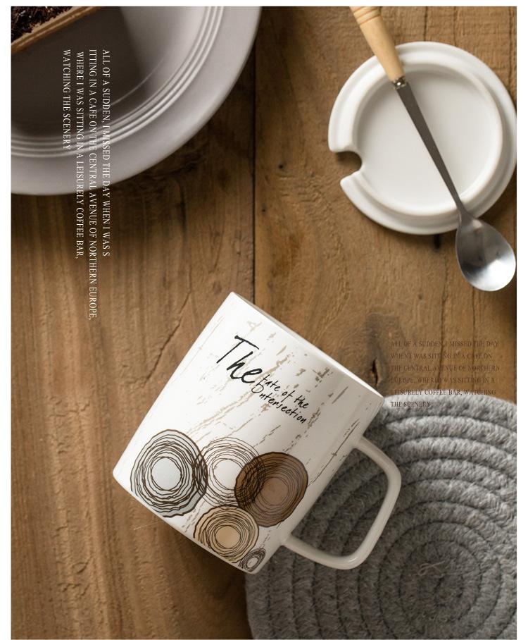 Taza de cerámica creativa, taza de agua sencilla, taza para el hogar con tapa y cuchara, taza de leche de moda personalizada, taza de café, taza de té