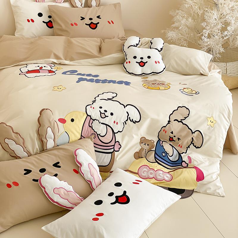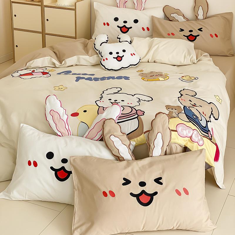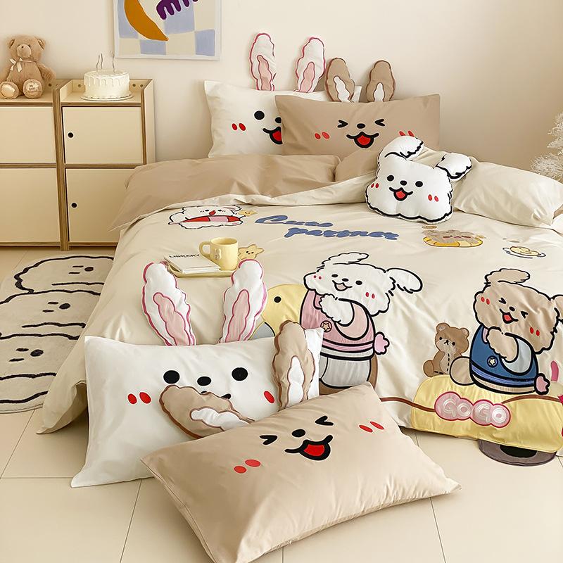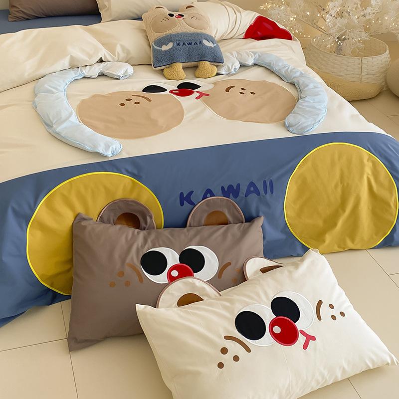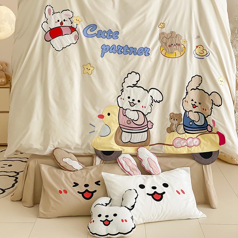 Serie de bordado tridimensional de algodón pesado súper linda, alegre y sanadora [envío de almohada del mismo estilo]