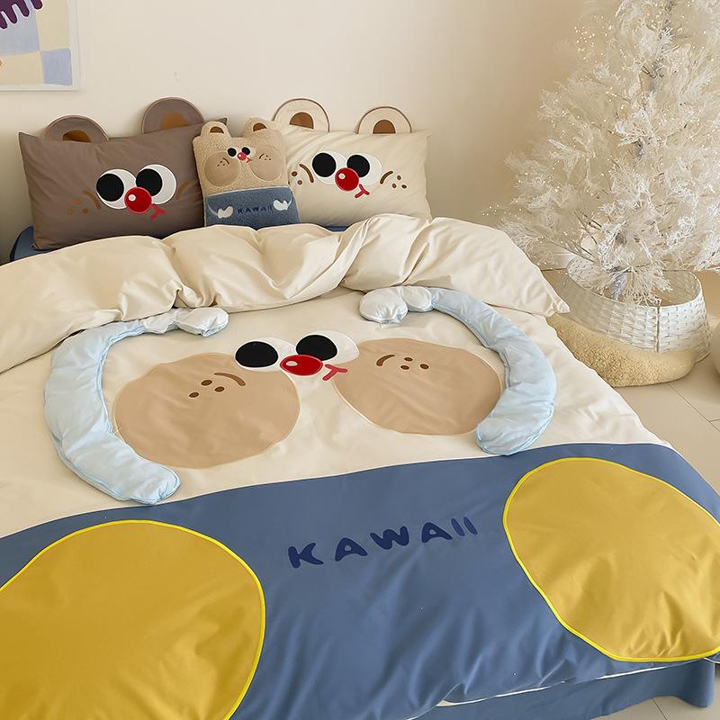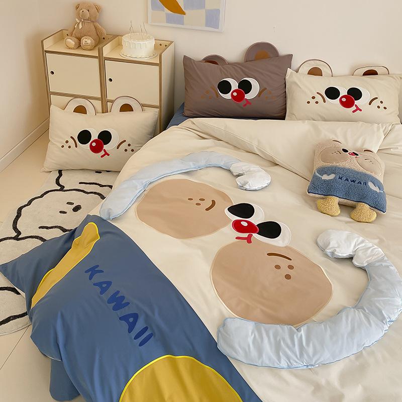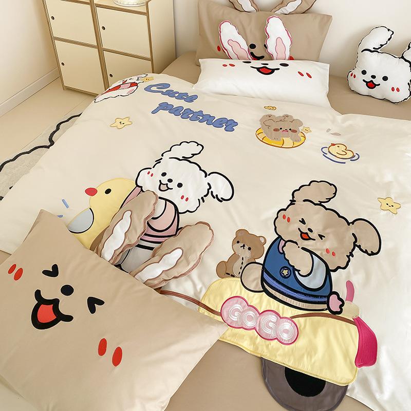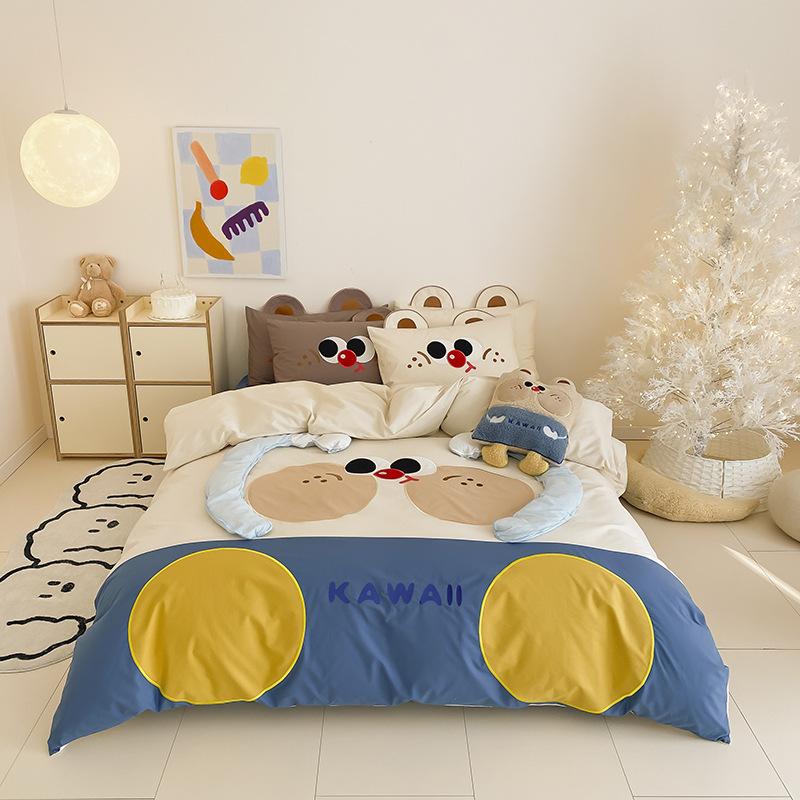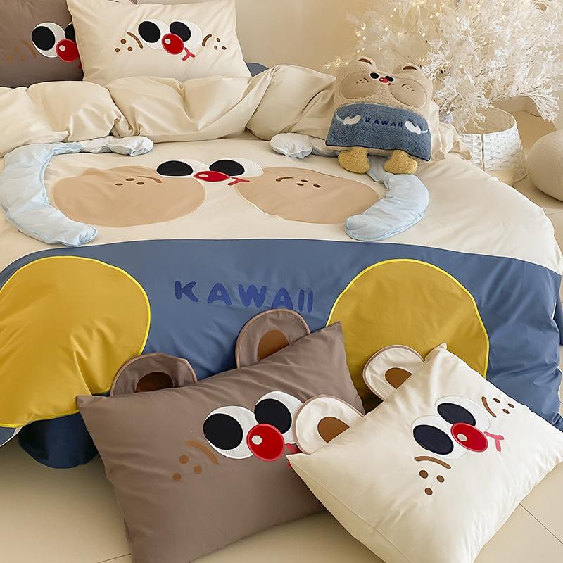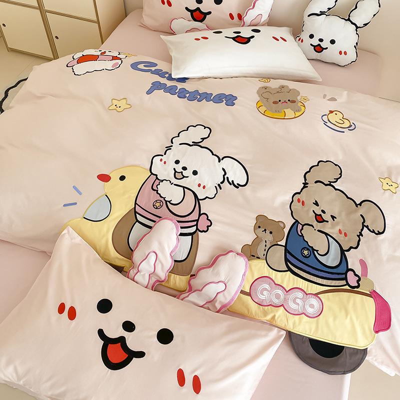 Serie de bordado tridimensional de algodón pesado súper linda, alegre y sanadora [envío de almohada del mismo estilo]
