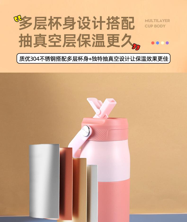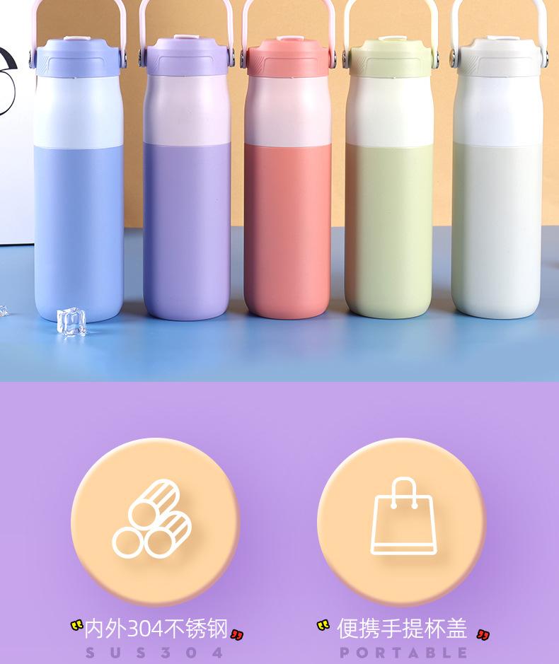 Termo de acero inoxidable 304 de gran venta transfronteriza, taza portátil al vacío con asas, taza de agua para deportes al aire libre, taza para estudiantes.