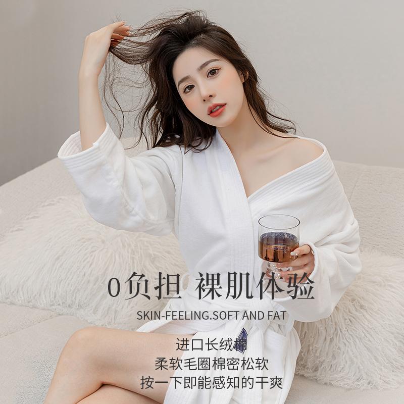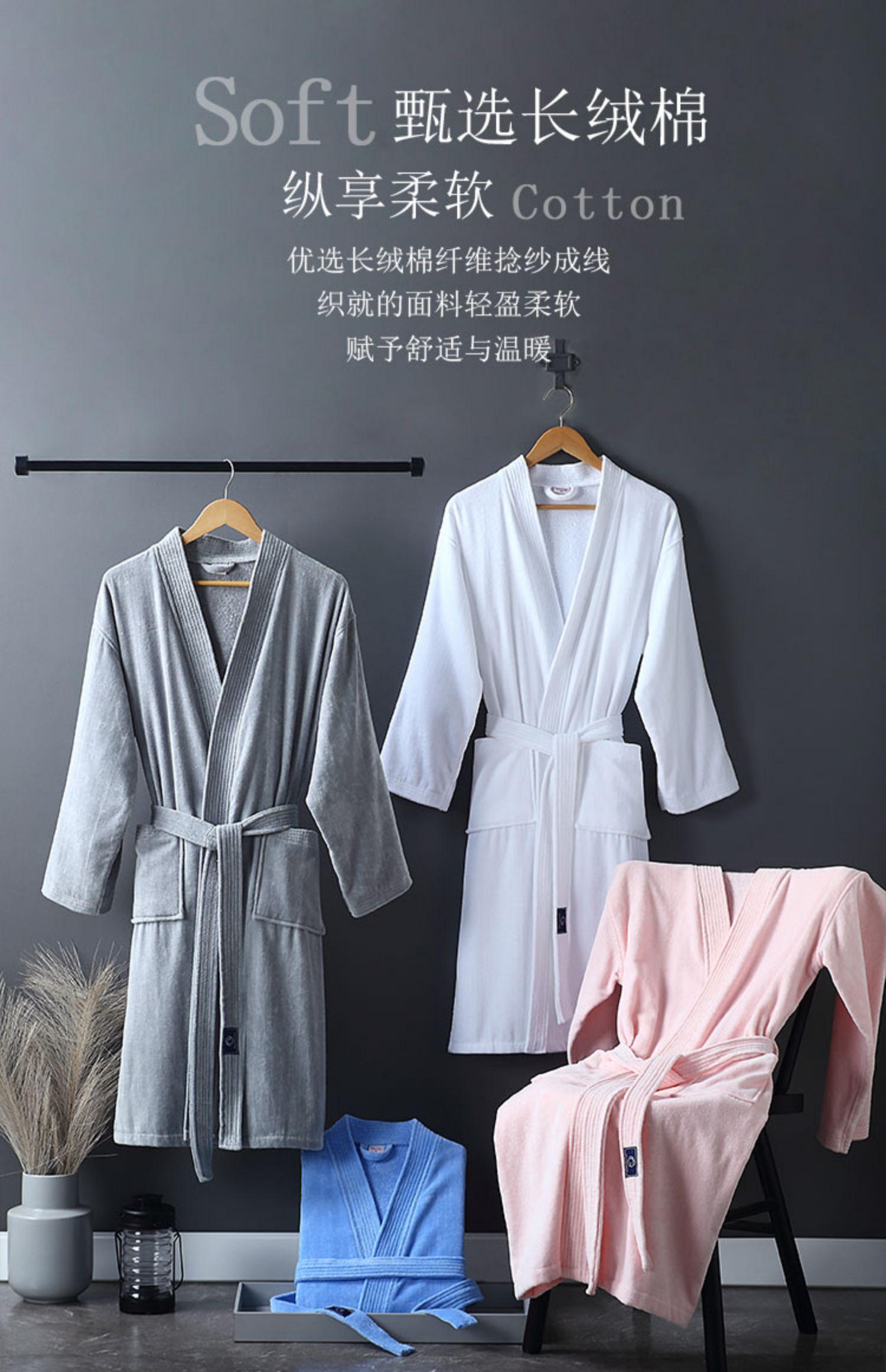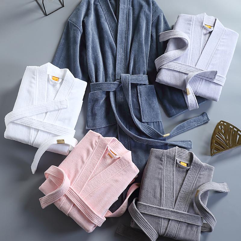 Albornoz de hotel de algodón puro, absorbente, de secado rápido, material de toalla, albornoz para hombre y mujer, camisón para adultos, todas las estaciones, otoño e invierno 2025