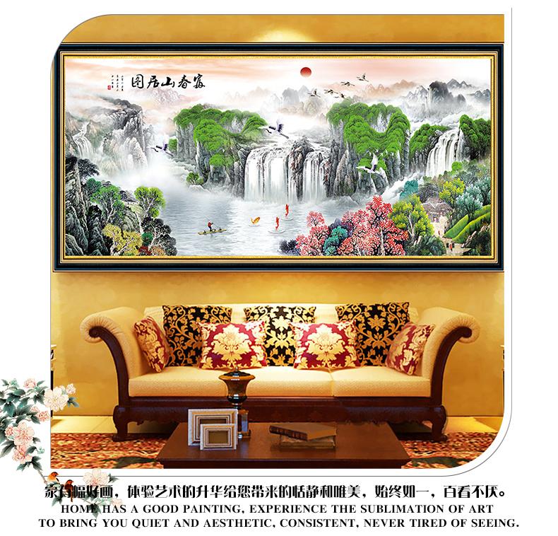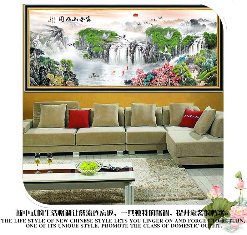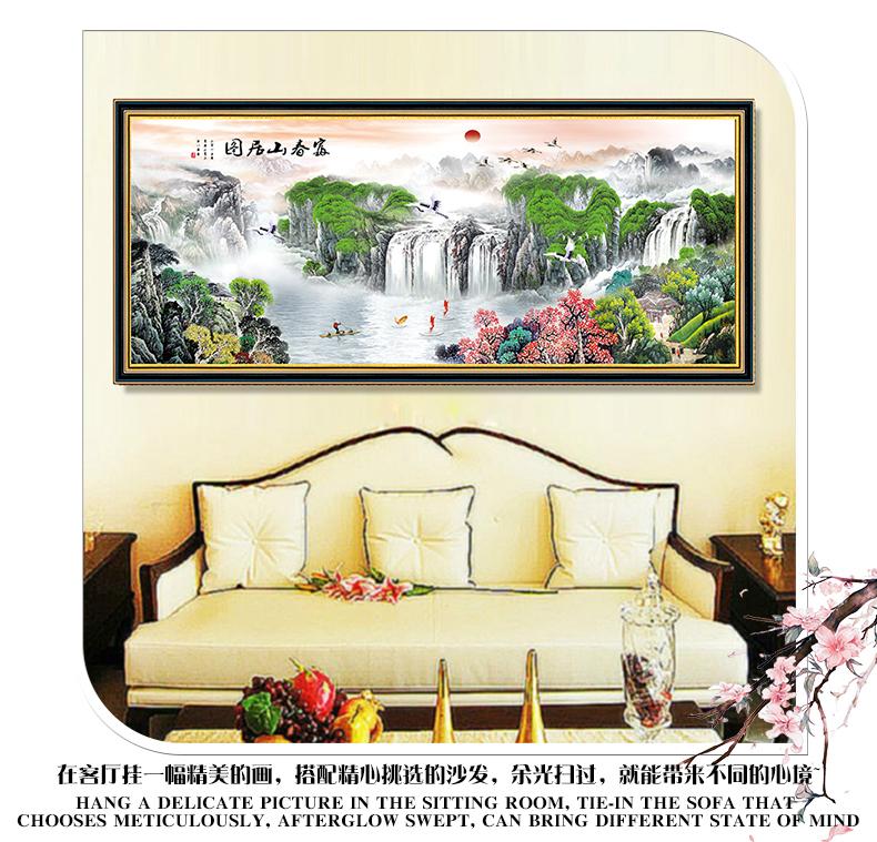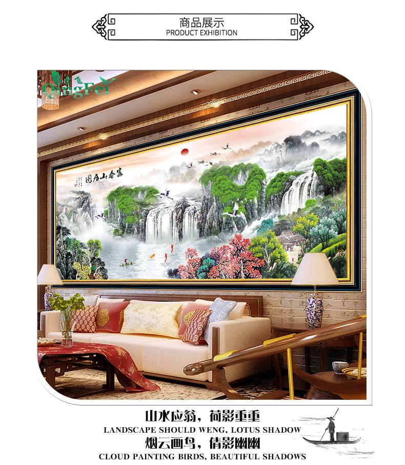 Bordado de Punto de Cruz Qingfei Figura Residencia Montaña Fuchun Cornucopia Montaña Agua Fluyendo Alto Sala de Estar Grande Hongyun Dangtou Koi Paisaje